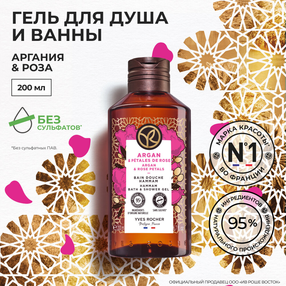 Купить Yves Rocher Гель для Душа и Ванны с Арганией и Розой «Традиции хаммама», 200 мл