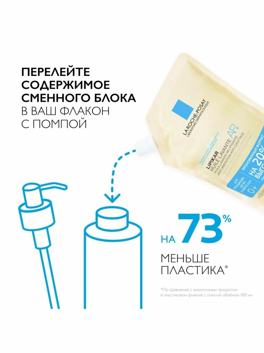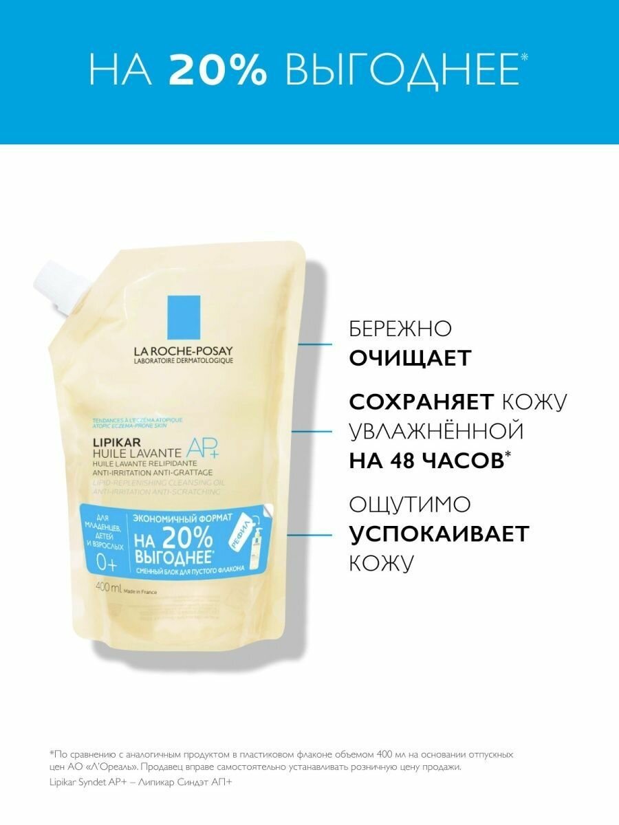 Купить LA ROCHE POSAY Смягчающее масло для ванны и душа для сухой и склонной к атопии кожи младенцев, детей и взрослых AP+, сменный блок, 400 мл