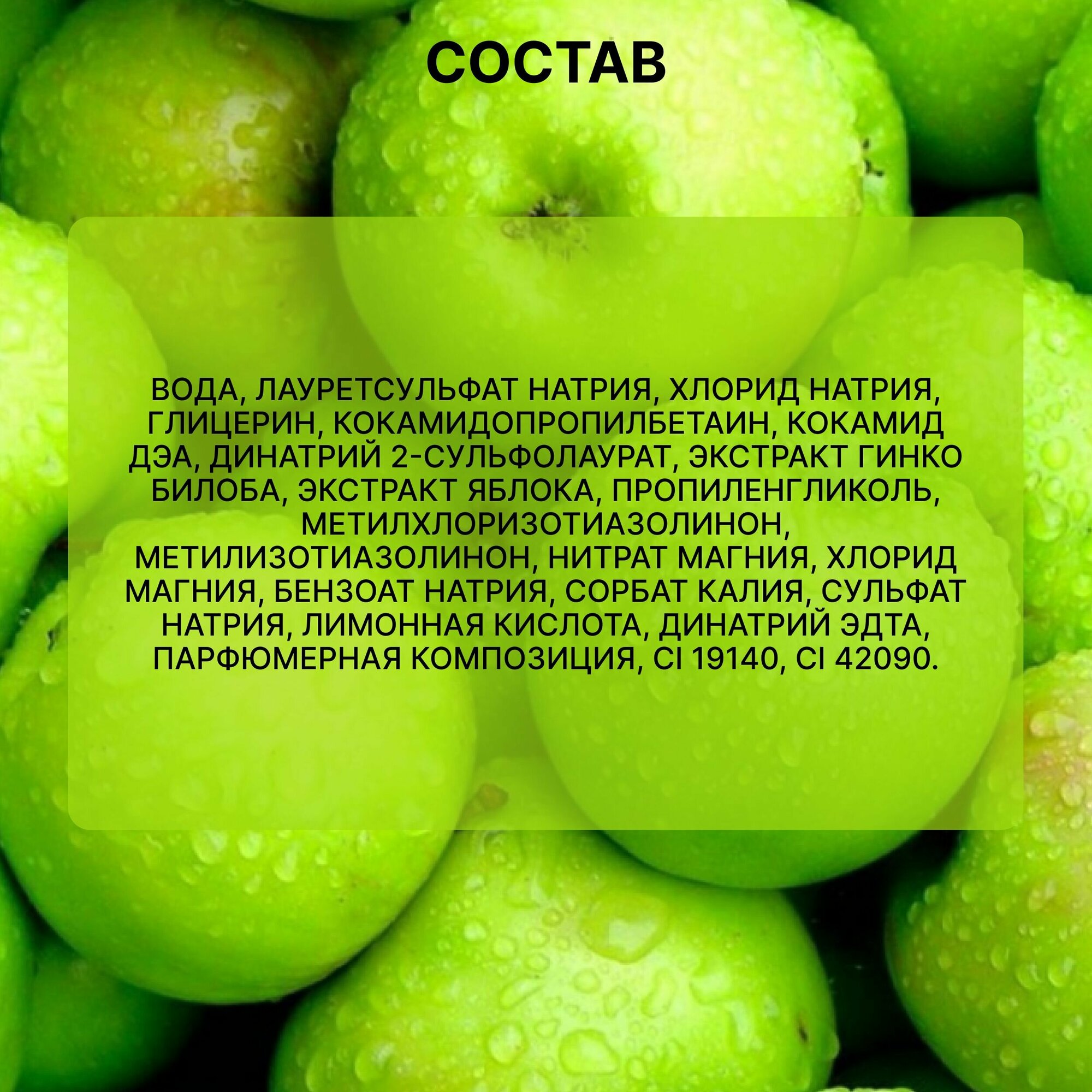 | Состав | Вода, лауретсульфат натрия, хлорид натрия, глицерин, кокамидопропилбетаин, кокамид ДЭА, динатрий 2-сульфолаурат, экстракт гинко билоба, экстракт яблока, пропиленгликоль, метилхлоризотиазолинон, метилизотиазолинон, нитрат магния, хлорид магния, бензоат натрия, сорбат калия, сульфат натрия, лимонная кислота, динатрий ЭДТА, парфюмерная композиция, CI 19140, CI 42090. |