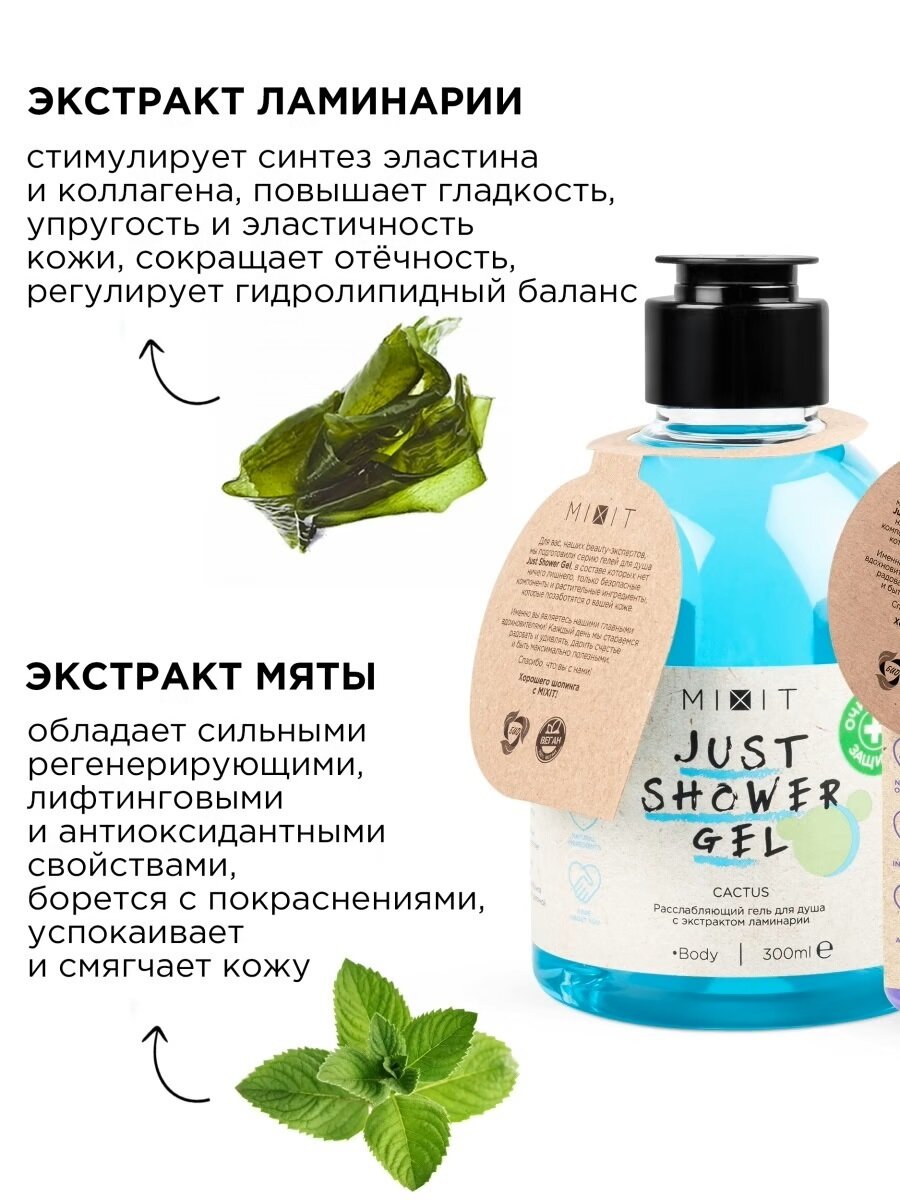 Купить MIXIT Увлажняющие и очищающие гели для душа с натуральными экстрактами мяты и имбиря Just Shower Gel