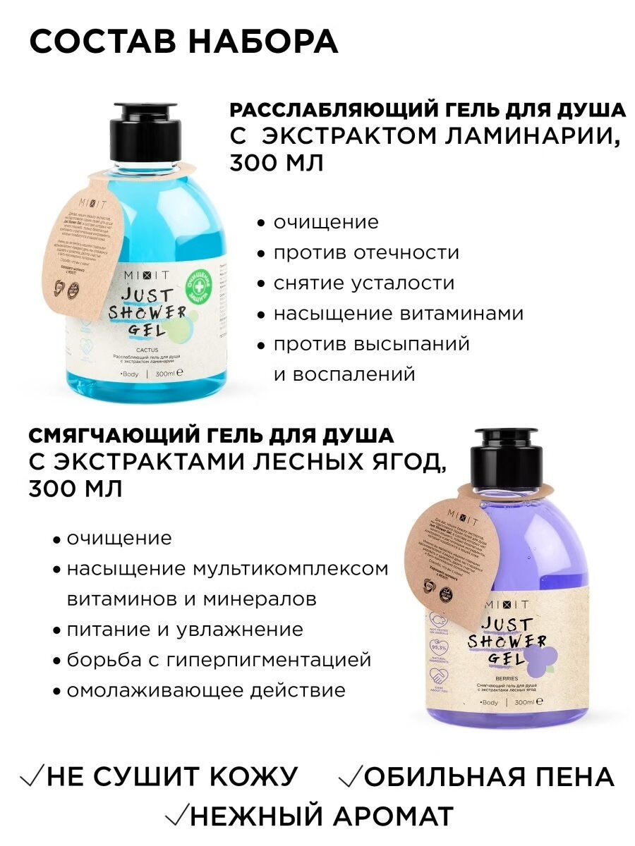 MIXIT Набор уходовой косметики: освежающий и смягчающий гели для душа Just Shower Gel