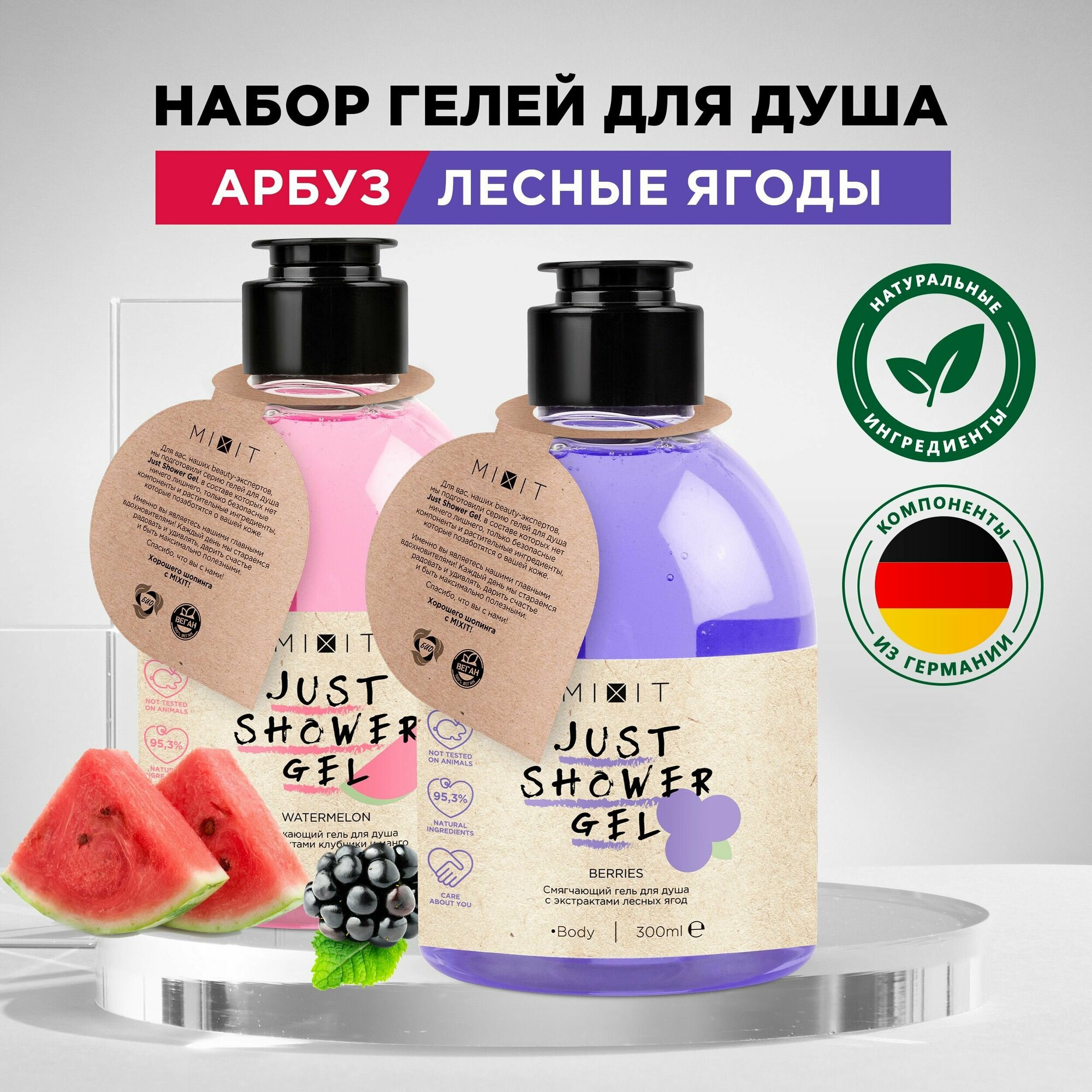 MIXIT Подарочный косметический бьюти бокс набор очищающих и парфюмированных гелей для душа. Увлажняющая косметика для ухода за кожей тела с ароматом арбуза и клубники JUST SHOWER GEL