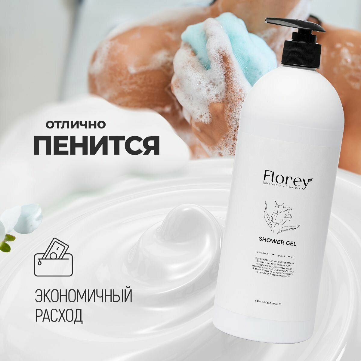 Купить Гель для душа Florey с дозатором 1 литр
