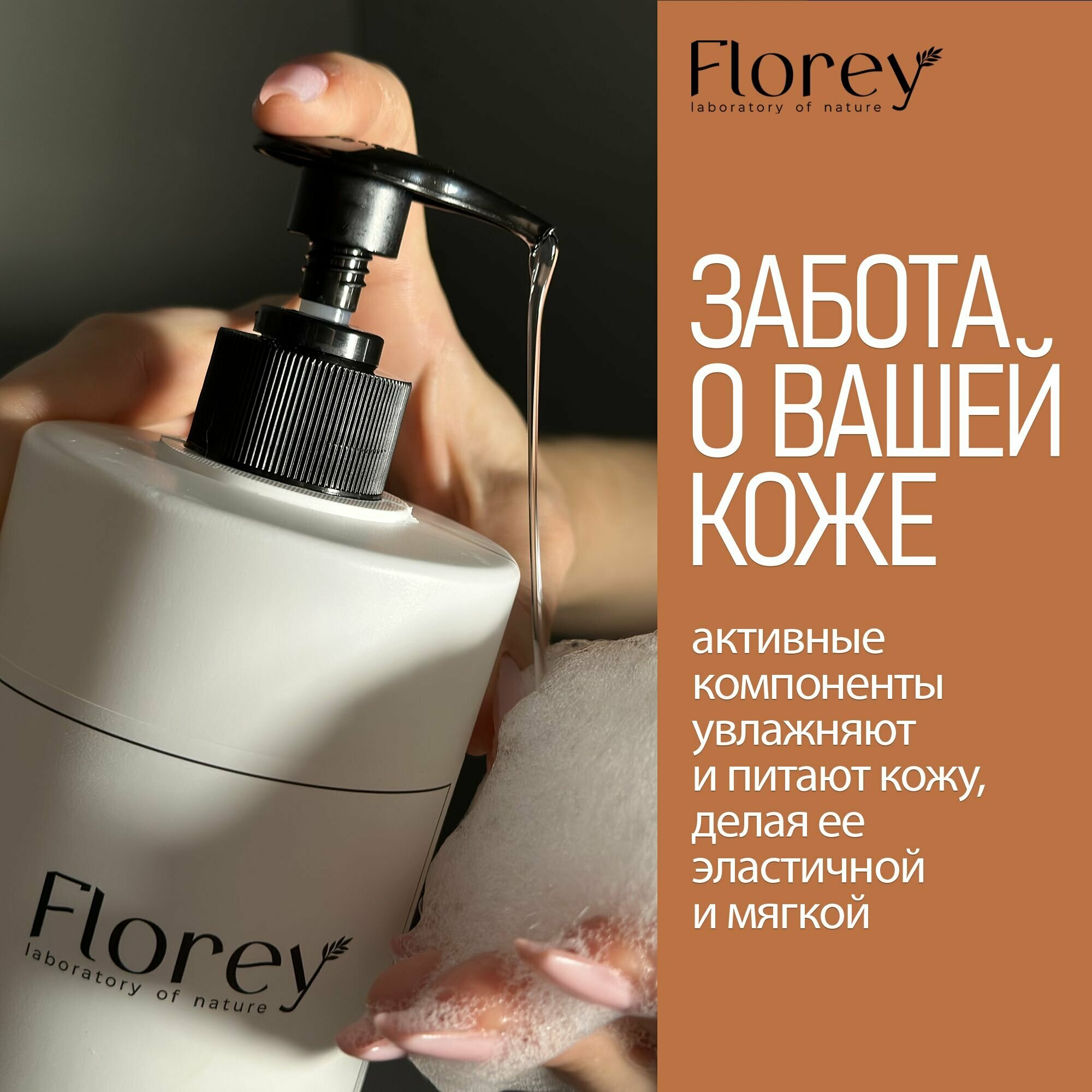 Гель для душа с дозатором Florey, 1 л +1 л