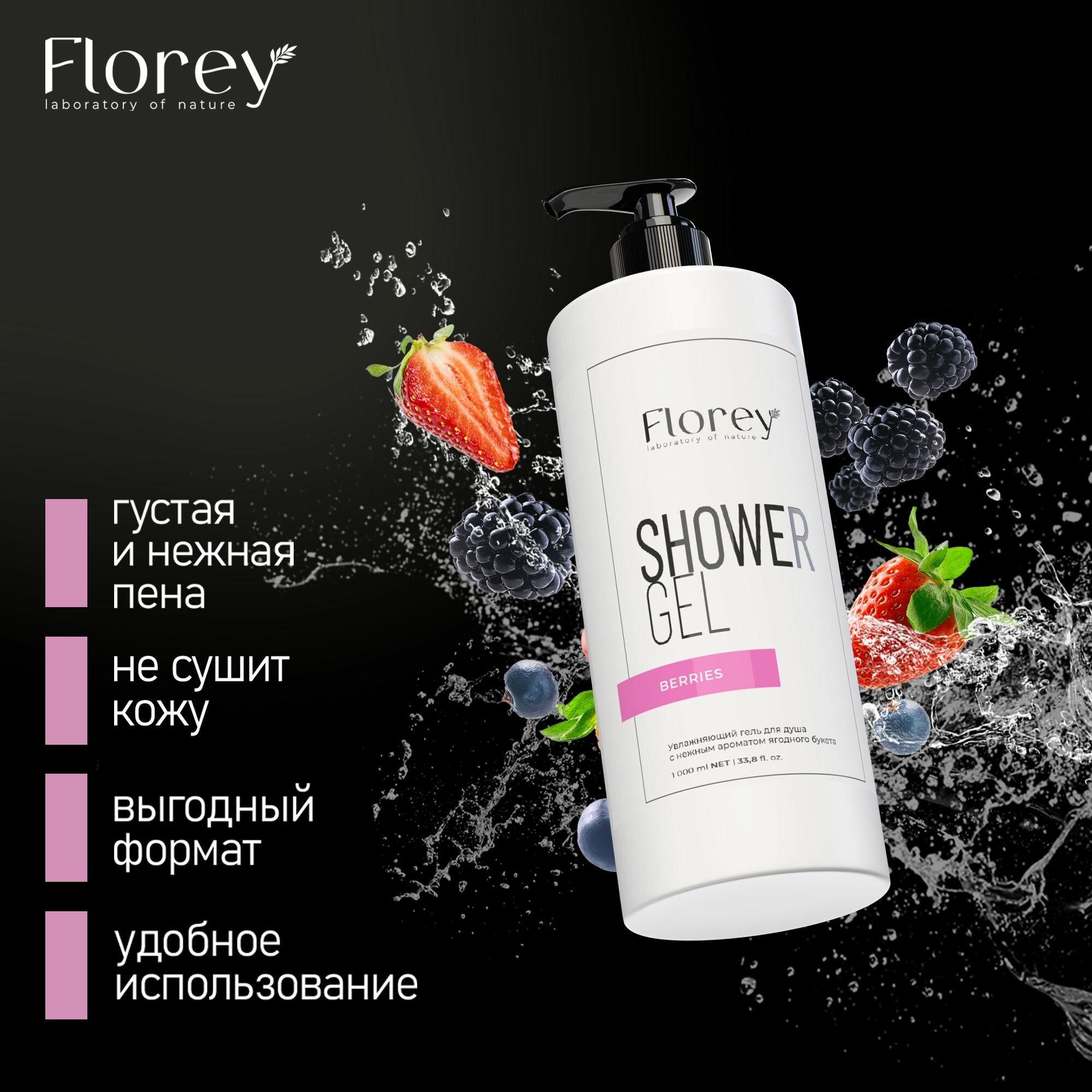 Купить Гель для душа Florey с ароматом ягод, 1 л + 1л