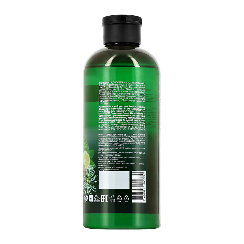 NORDS SECRET Гель-масло для душа "Черный можжевельник" тонизирующий, 400 мл