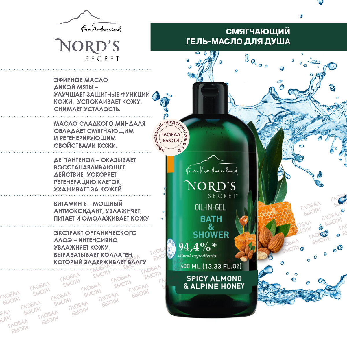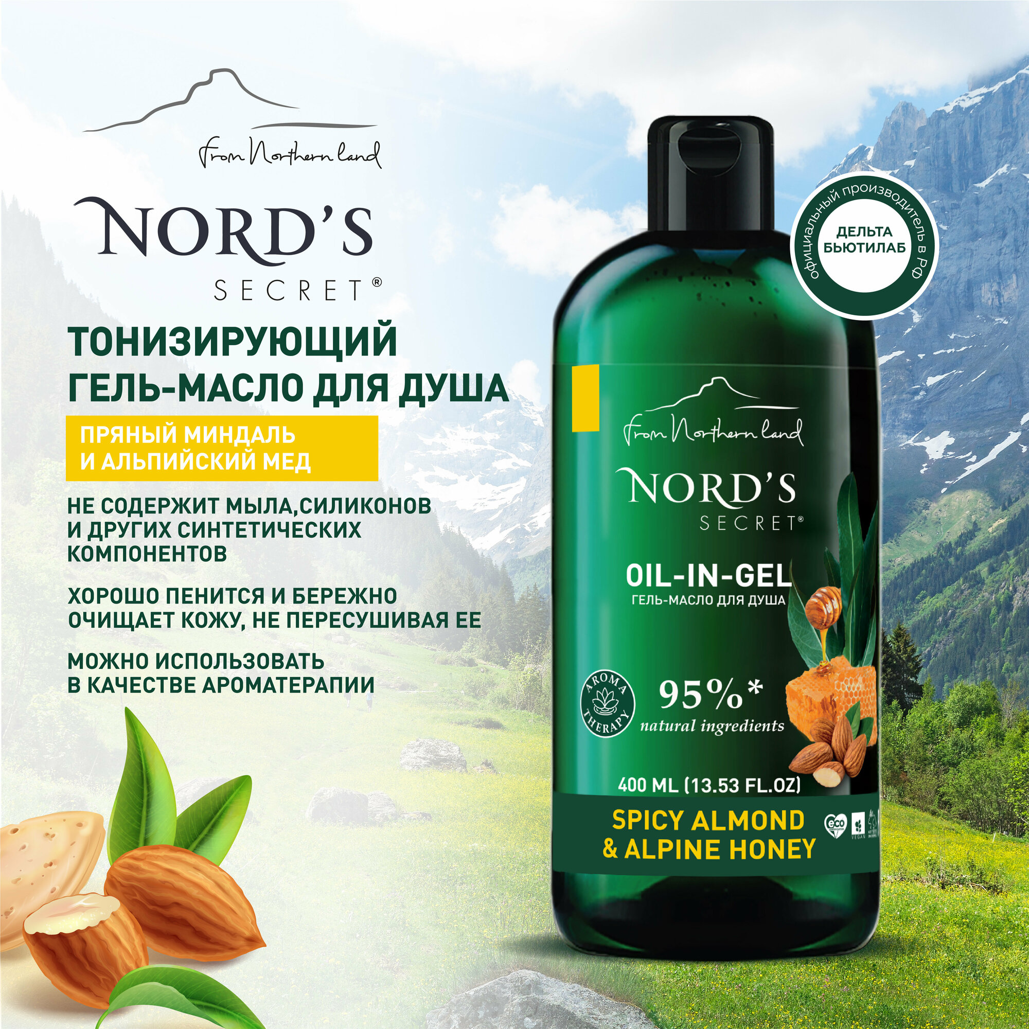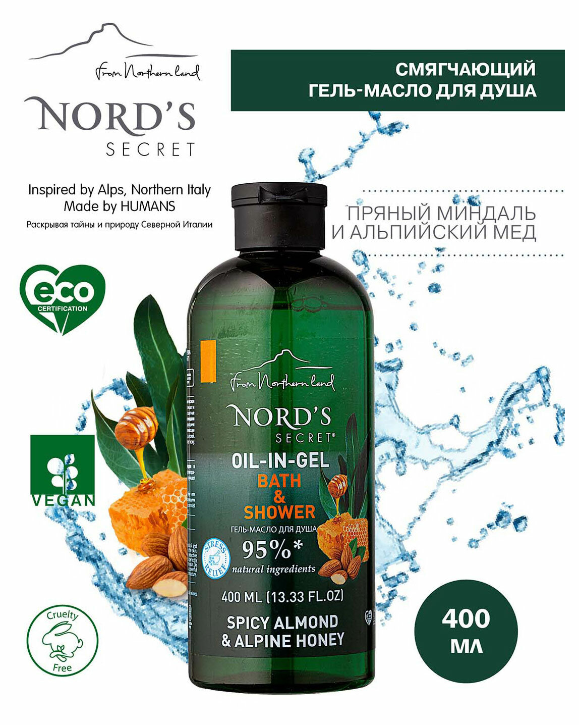 NORDS SECRET Смягчающий гель масло для душа "Пряный миндаль и альпийский мед", 400 мл