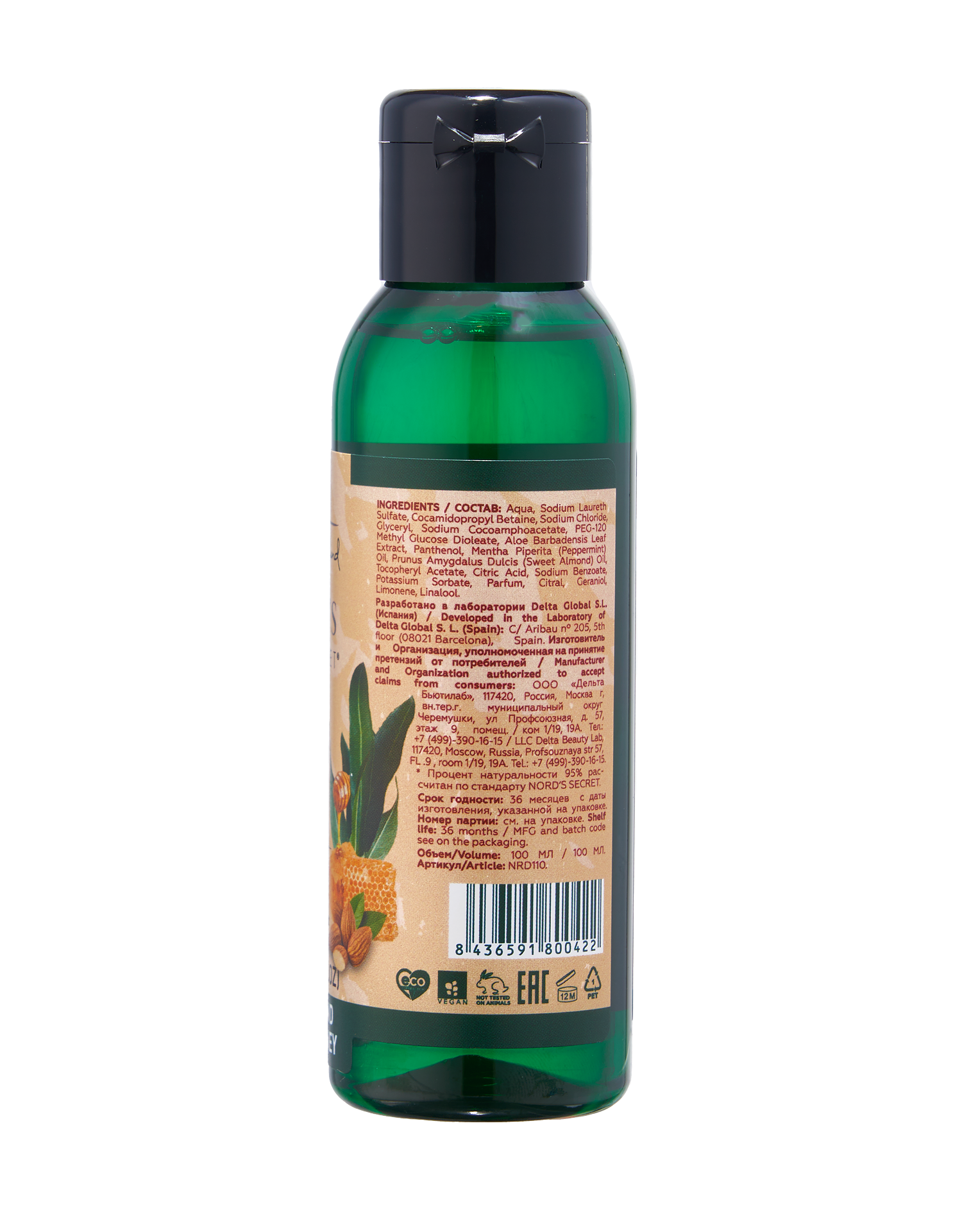 Купить NORDS SECRET Смягчающий мини гель для душа с эфирным маслом "Пряный миндаль и альпийский мед", 100 мл