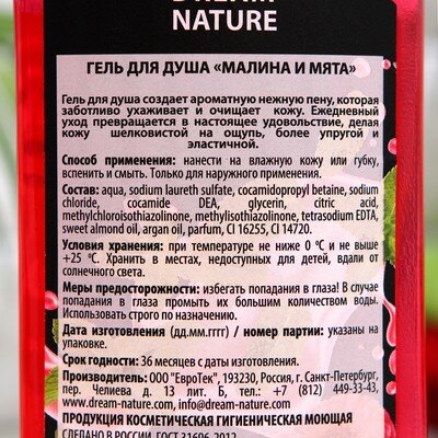 Купить Dream Nature Гель для душа "Малина и мята", 500 мл