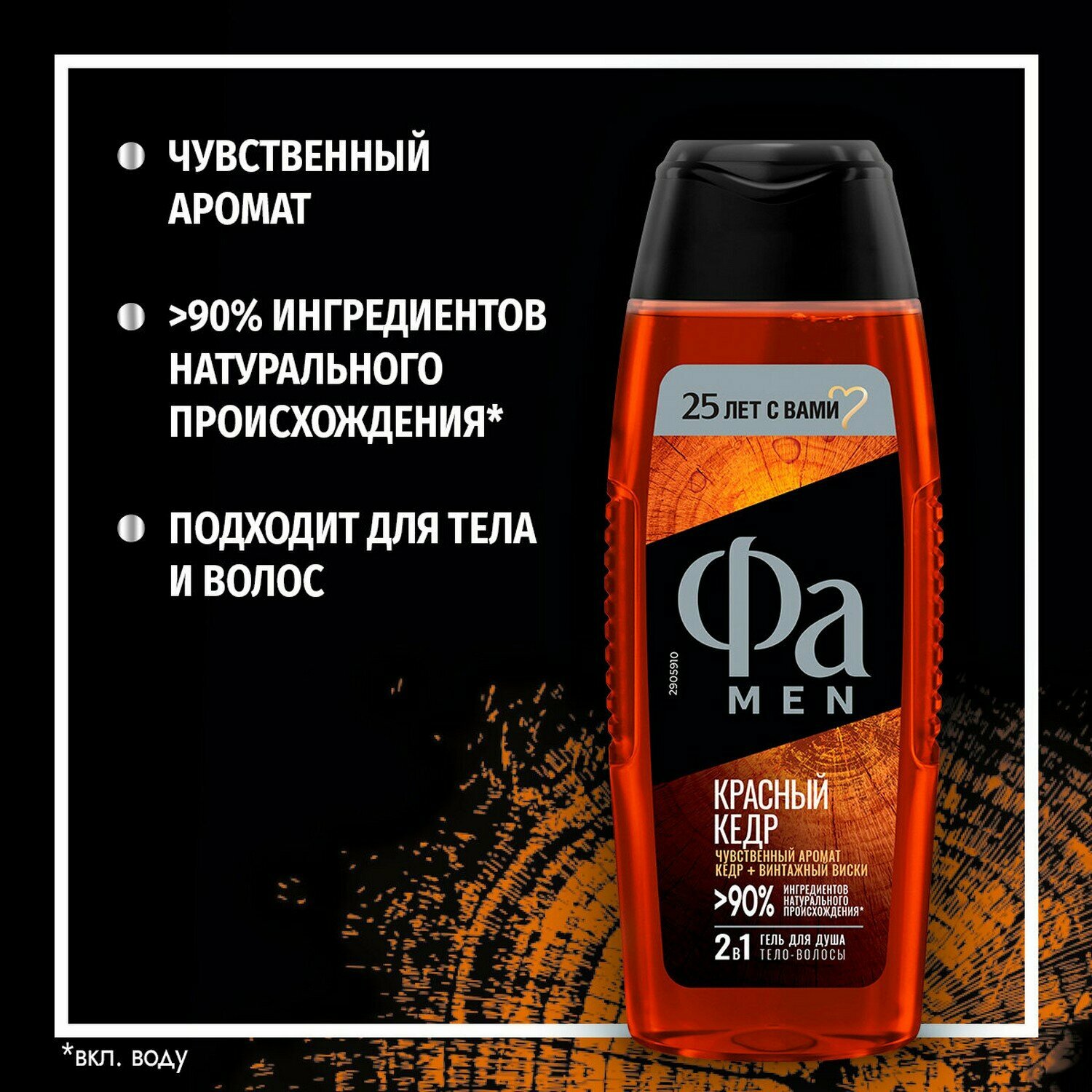 Фа MEN Гель для душа мужской 2-в-1 Красный кедр с ароматом кедра и винтажного виски, 250 мл