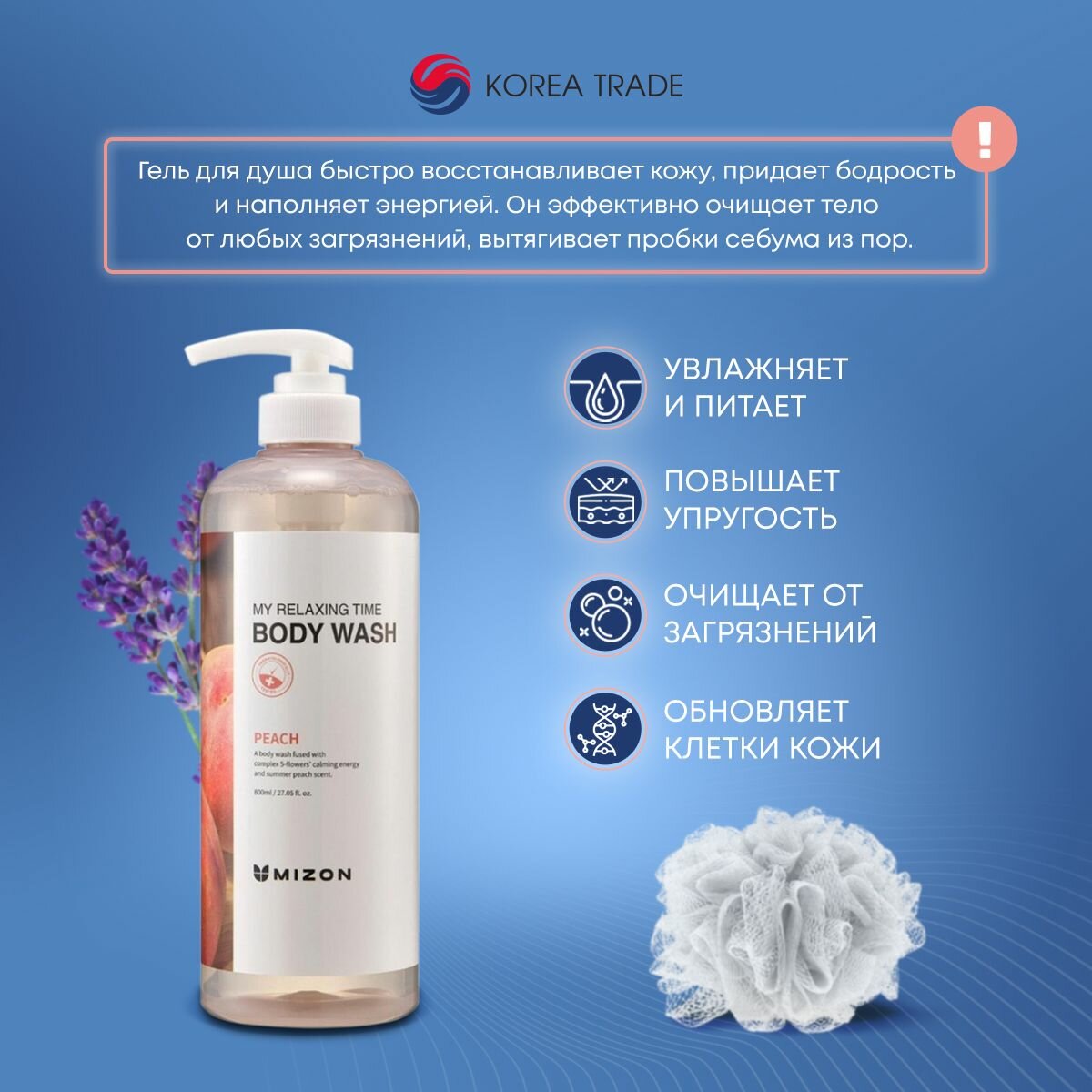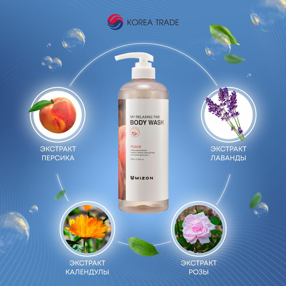 Купить Mizon Гель для душа с экстрактом персика MY RELAXING TIME BODY WASH PEACH 800мл