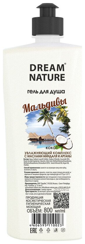 Гель для душа Dream Nature Мальдивы, 800 мл