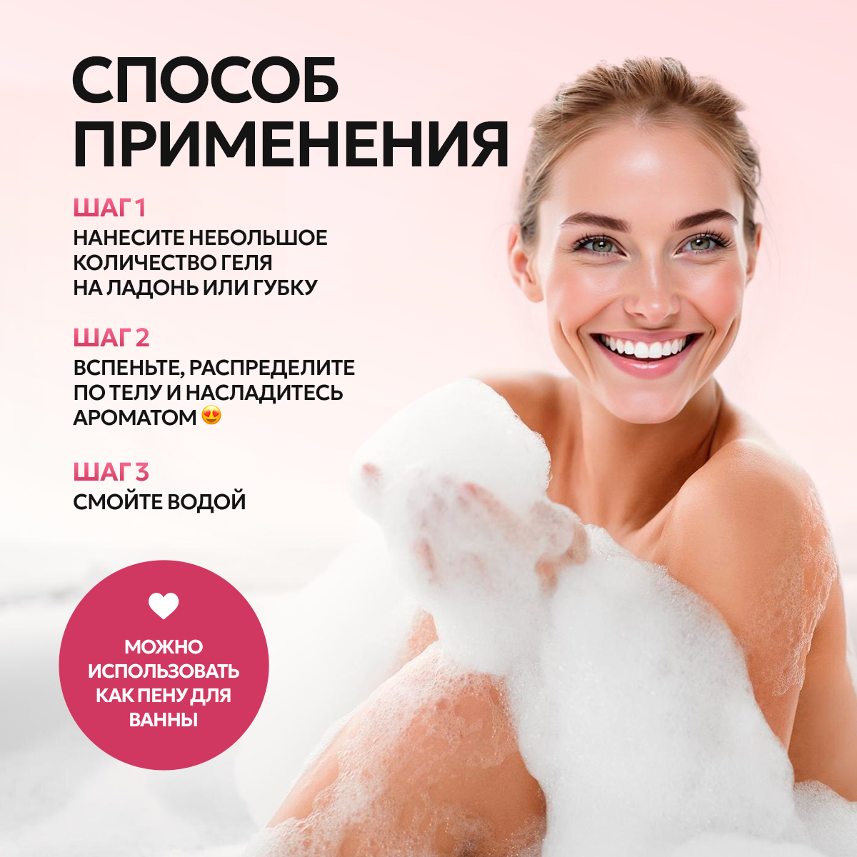 | Способ применения | Нанести небольшое количество геля на ладонь или губку, вспеньте, распределите по телу массирующими движениями, смойте водой. |