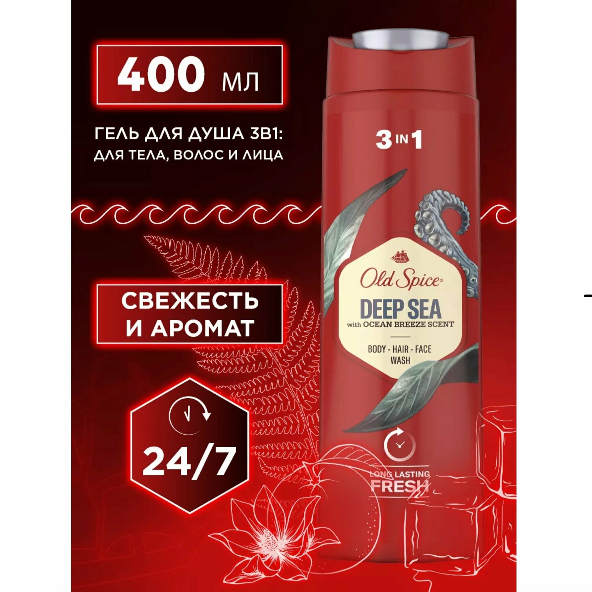 Набор для ухода за телом Old Spice "Deep Sea", гель для душа и шампунь 3 в 1, 400 мл интересное:
