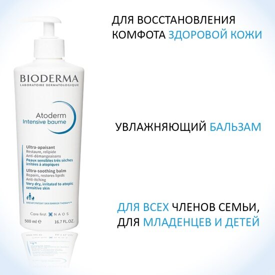 BIODERMA Atoderm Intensive Бальзам для восстановления сухой и атопичной кожи лица и тела, 500 мл