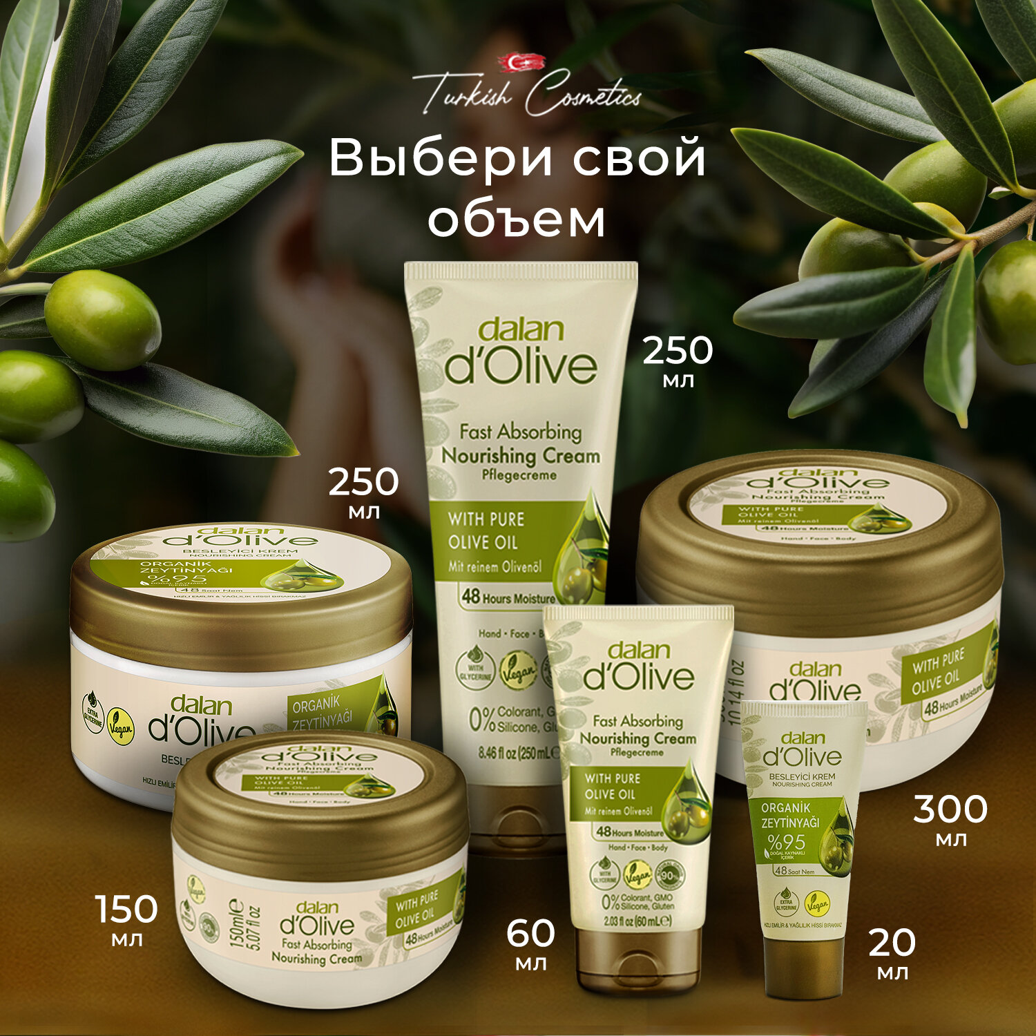 Купить Увлажняющий крем для рук и тела Dalan d'Olive натуральный, дневной, ночной, 300 мл