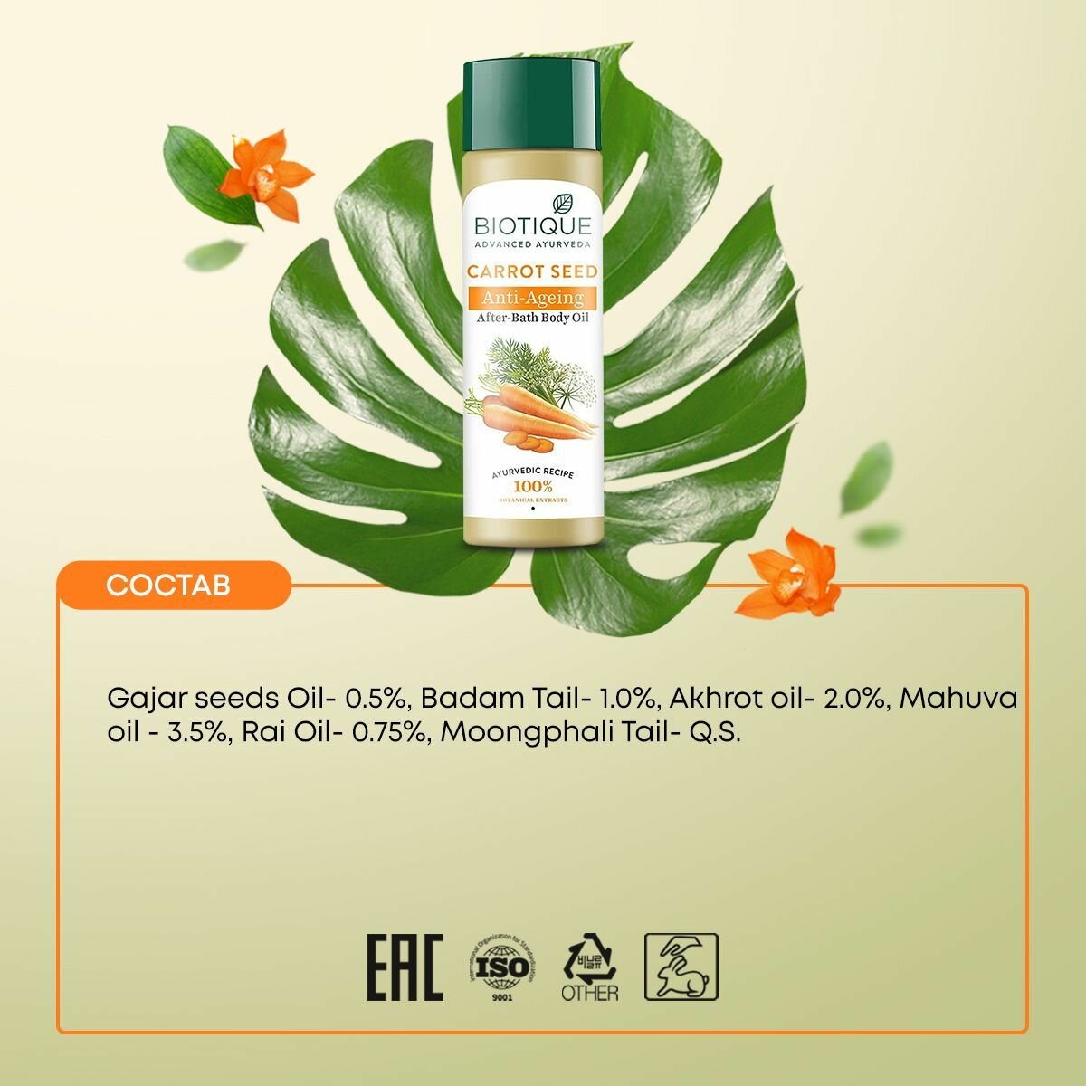Масло для тела антивозрастное, увлажняющее с экстрактом семян моркови Biotique (Биотик), 120мл интересное: