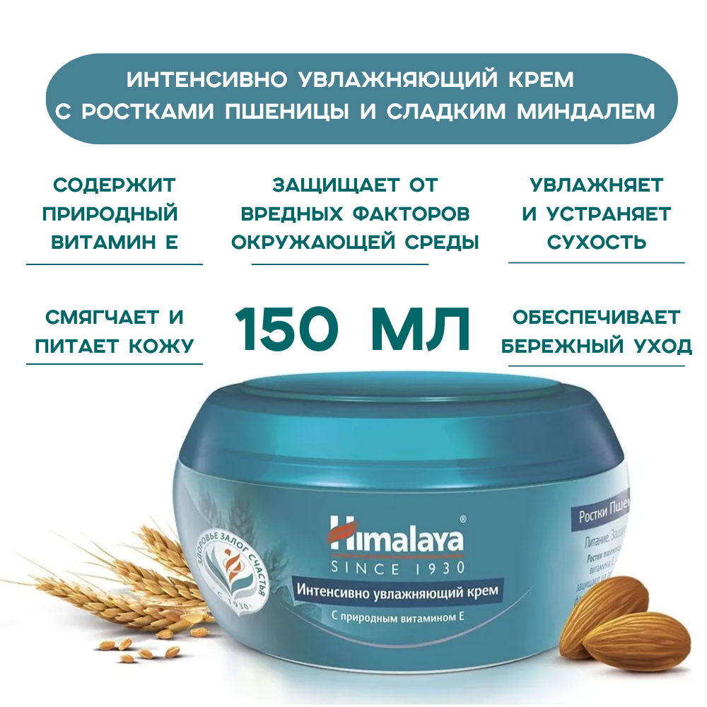 Крем для лица интенсивно увлажняющий HIMALAYA Since 1930 с Пшеницей и Миндалем, 150 мл