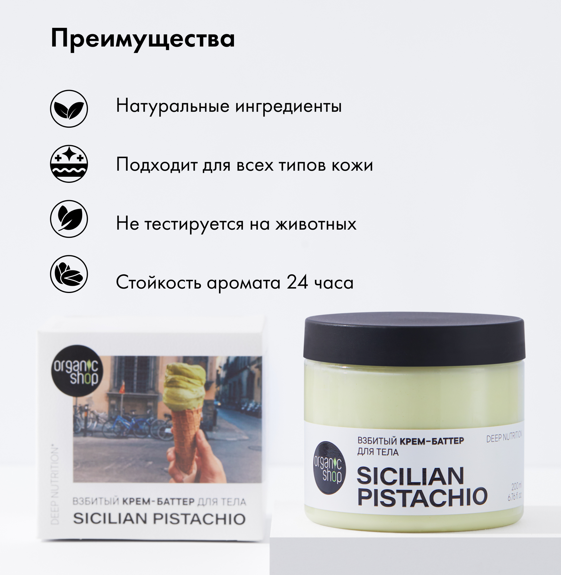 Взбитый крем-баттер для тела Organic Shop Sicilian Pistachio с ароматом фисташки, 200 мл