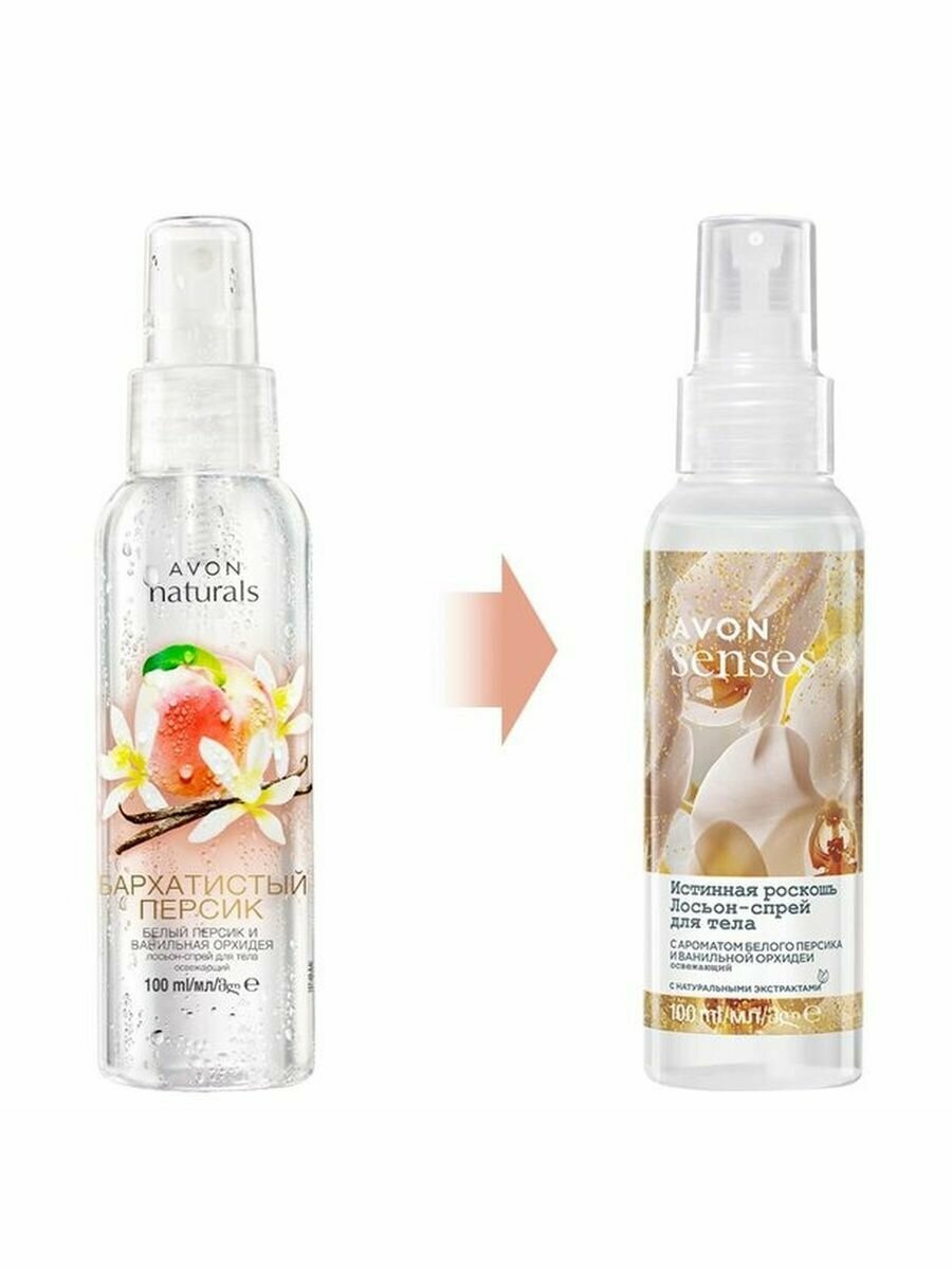 AVON Лосьон-спрей для тела Истинная роскошь, с ароматом белого персика и ванильной орхидеи, 100 мл
