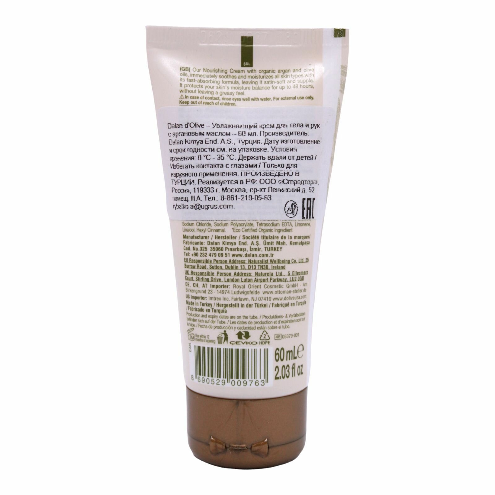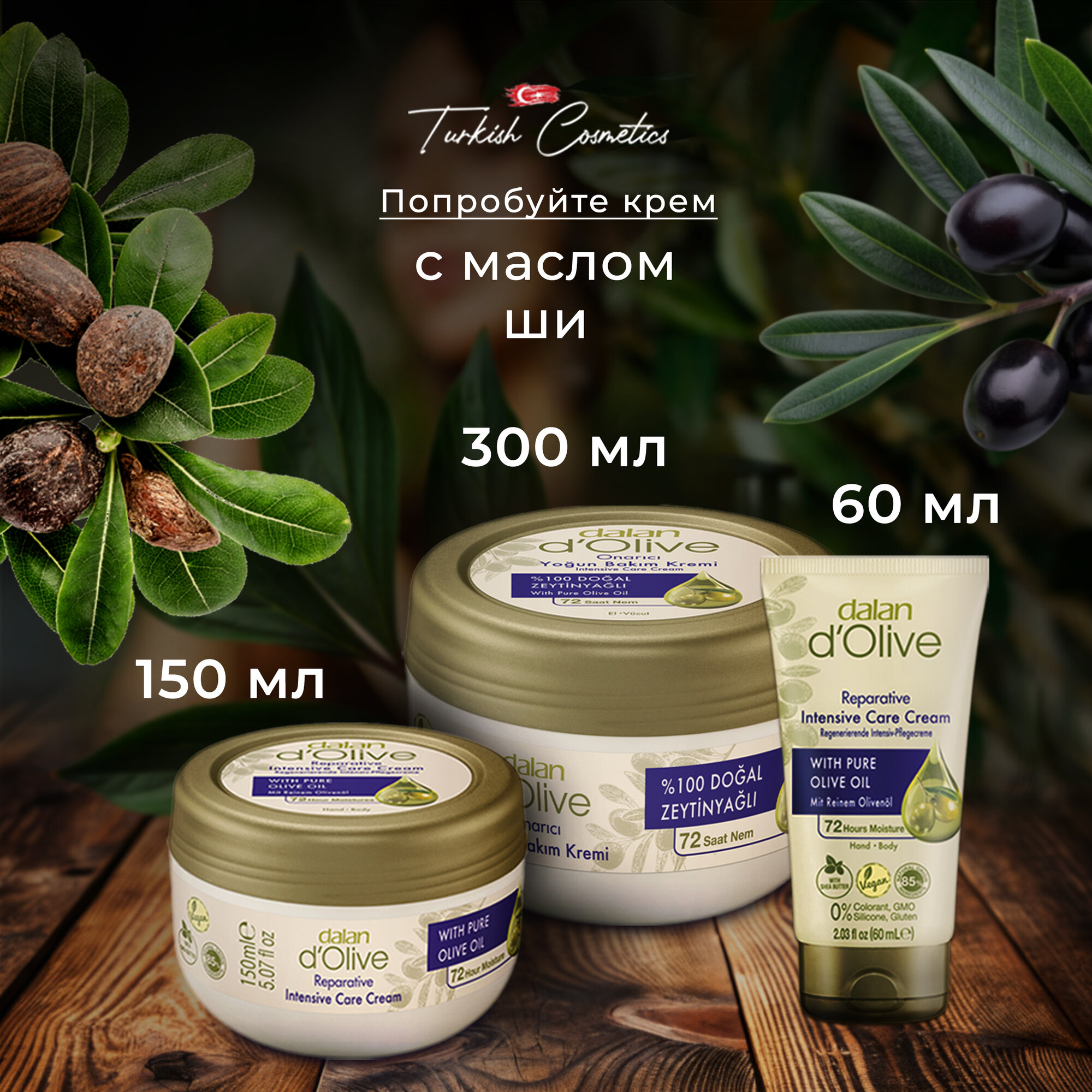 Питающий крем для лица, рук и тела Dalan с аргановым маслом и маслом оливы, 60 мл