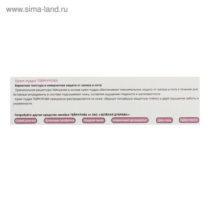 Крем - пудра от запаха и пота "Теймурова ", 50 мл интересное: