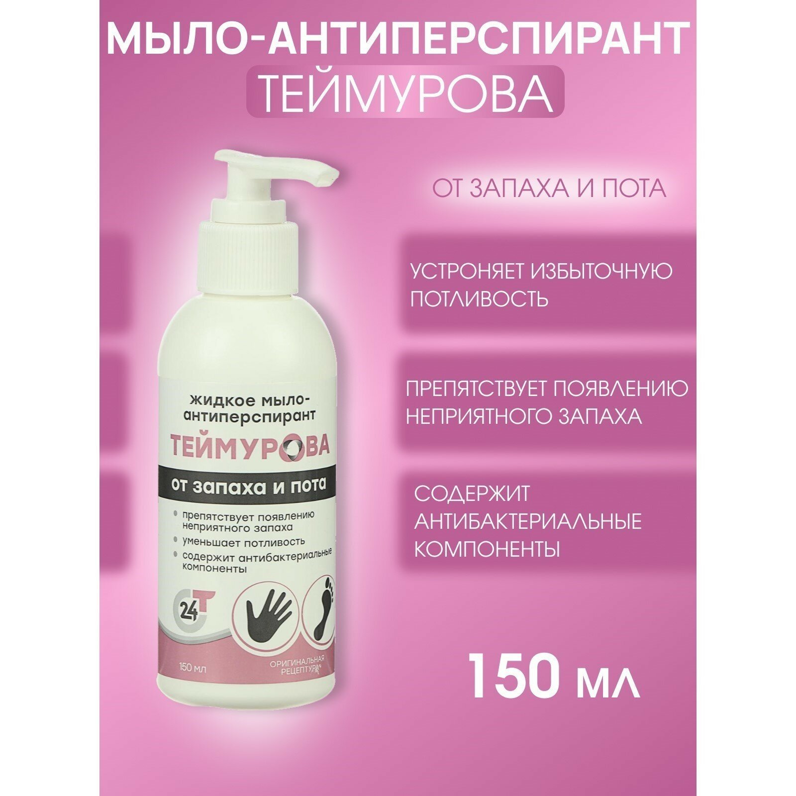 Теймурова Жидкое мыло для рук и ног с дозатором 150 мл Антиперспирант от запаха и пота