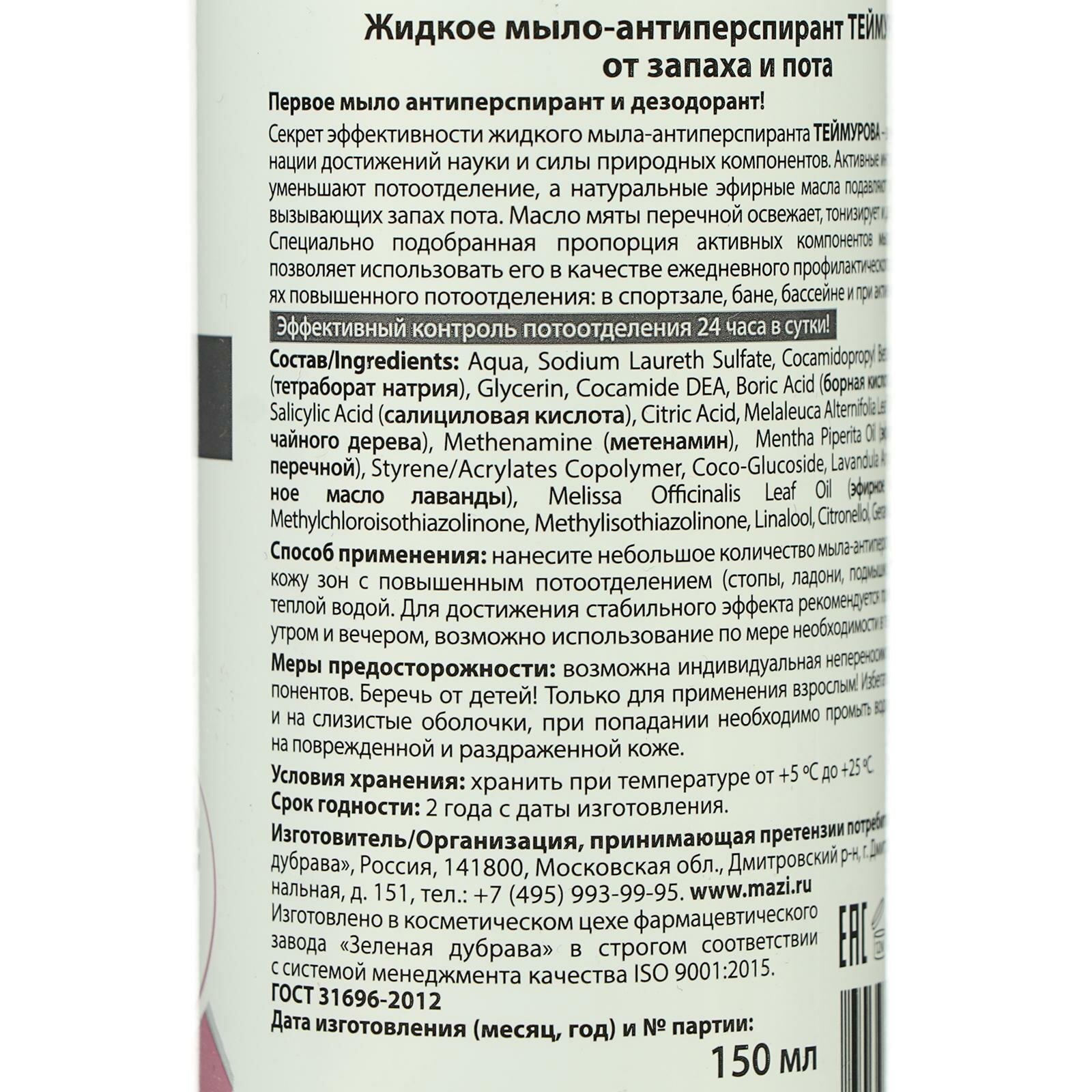 Жидкое мыло-антиперспирант "Теймурова ZD" от запаха и пота, 150 мл интересное: