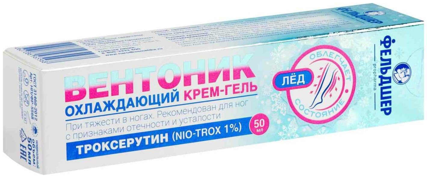 Крем-гель охлаждающий при тяжести в ногах Вентоник Фельдшер 50мл интересное: