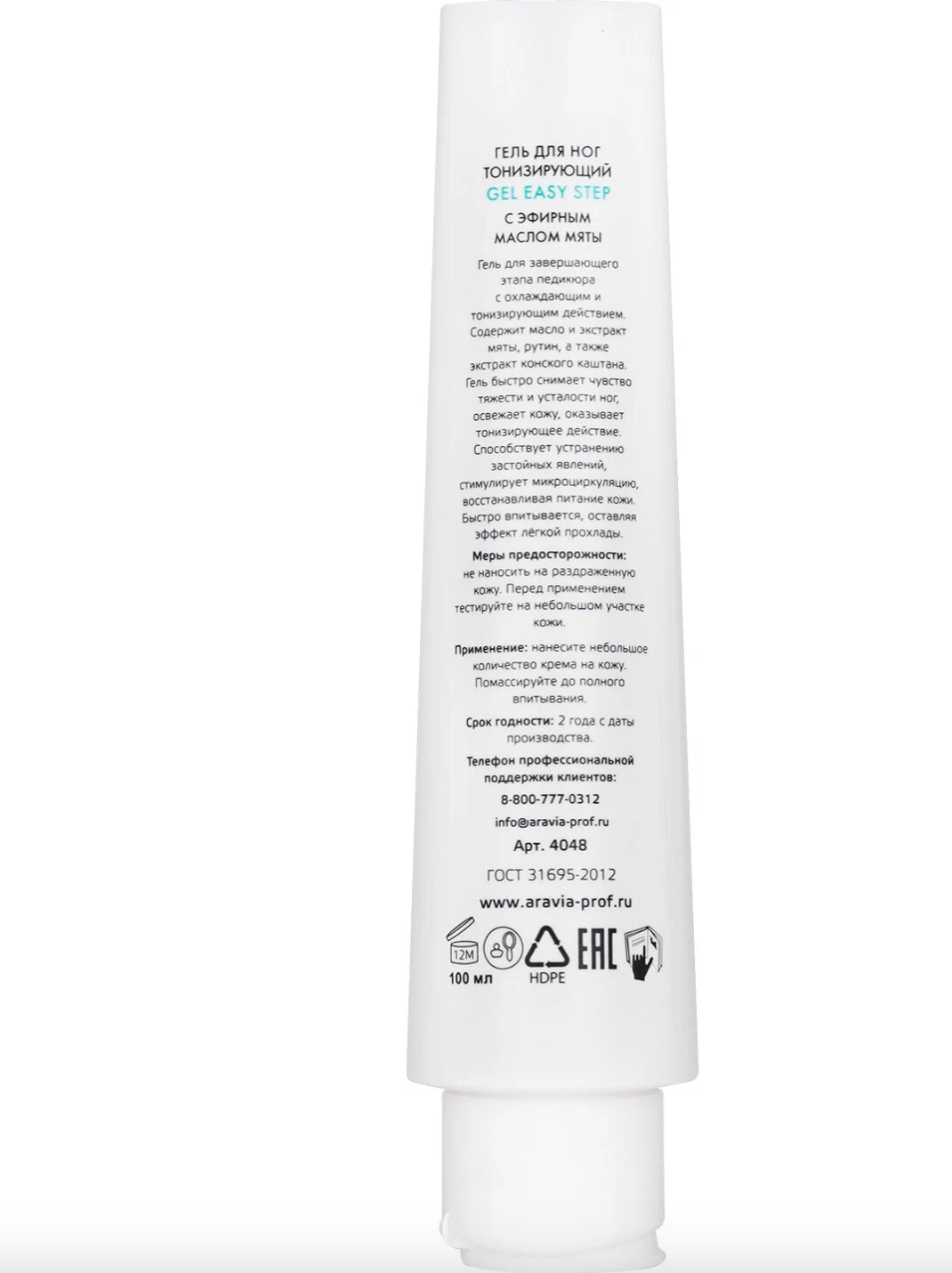 ARAVIA Гель для ног тонизирующий Easy Step с эфирным маслом мяты, 100 мл.