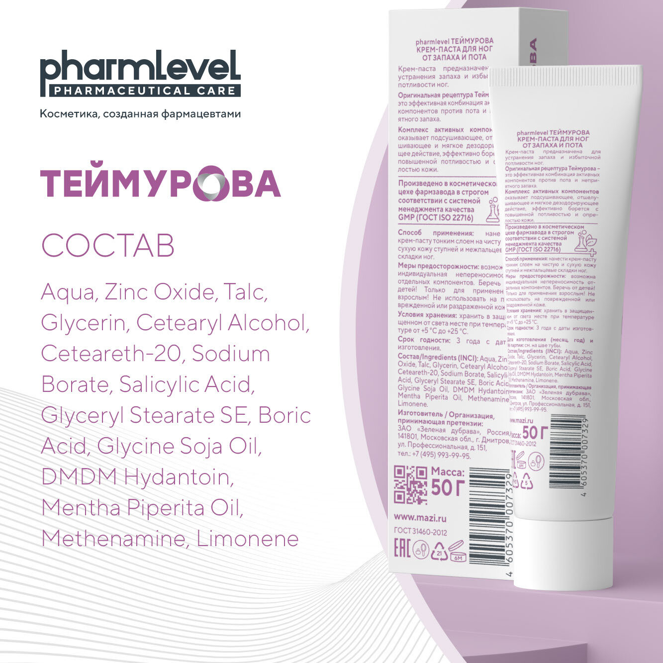 Теймурова Крем паста для ног от запаха и пота 50 г Антиперспирант мужской и женский