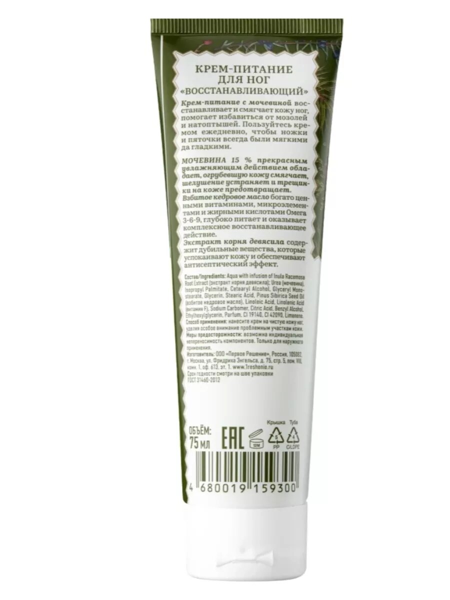 Рецепты бабушки Агафьи Крем-питание для ног Восстанавливающий, 75 мл интересное: