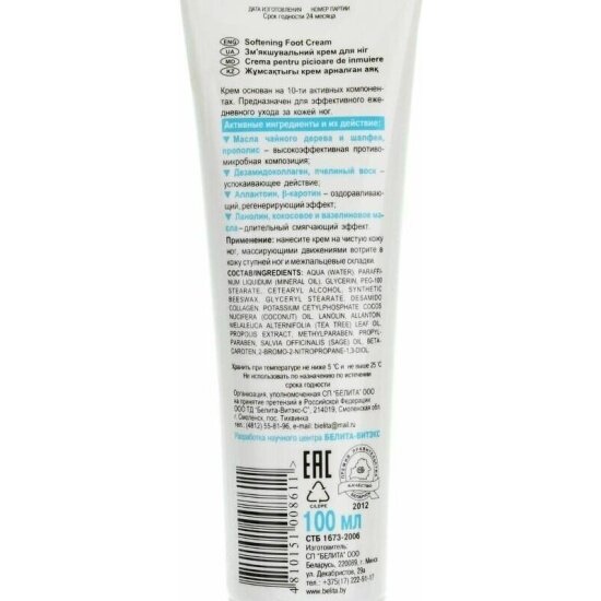 Крем для ног Белита-Витекс "Foot Care", смягчающий, 100 мл интересное: