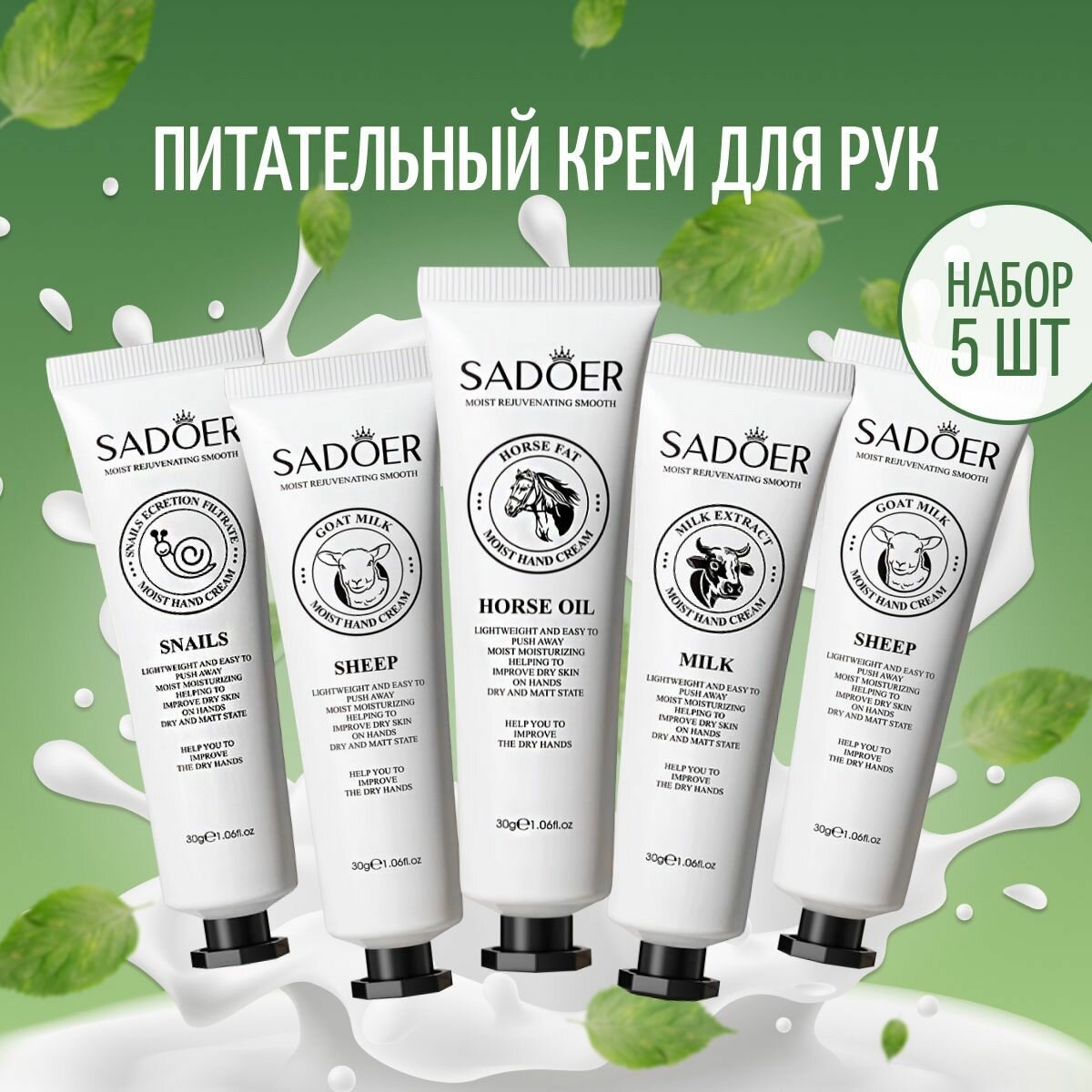 Набор увлажняющих кремов для рук Sadoer с экстрактом молока 30 гр. + с козьем молоком 30 гр.