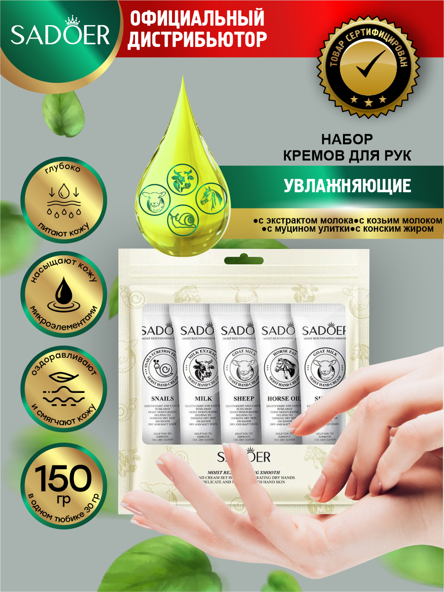 Увлажняющий крем для рук Sadoer 5 штук по 30 мл / Питательный заживляющий восстанавливающий мини набор из 5 шт / Подарочные крема от трещин на руках и очень сухой коже / Маленький защитный зимний крем с муцином улитки / Мужской новогодний подарок