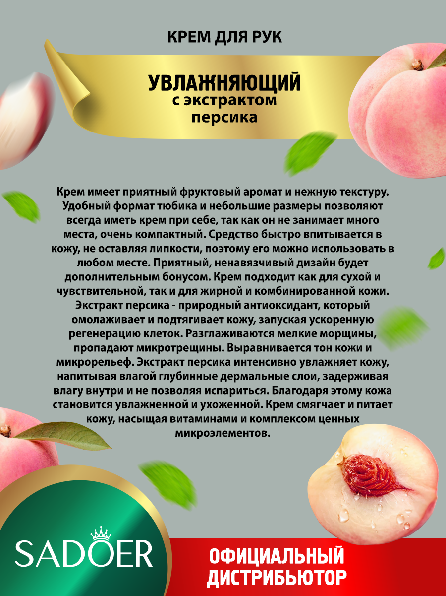 Увлажняющий крем для рук Sadoer с экстрактом персика 30 гр.