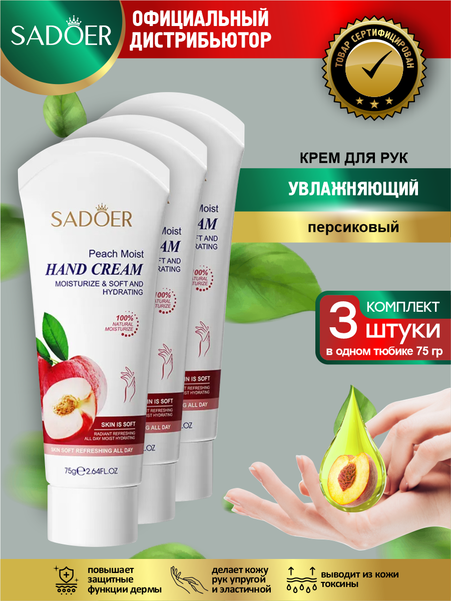 Купить Увлажняющий крем для рук Sadoer персиковый 75 гр. х 3 шт.