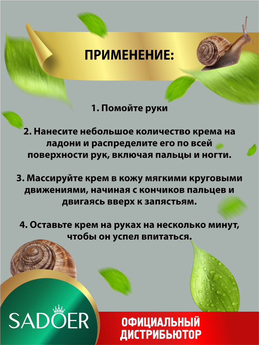 Увлажняющий крем для рук Sadoer с муцином улитки 30 гр.