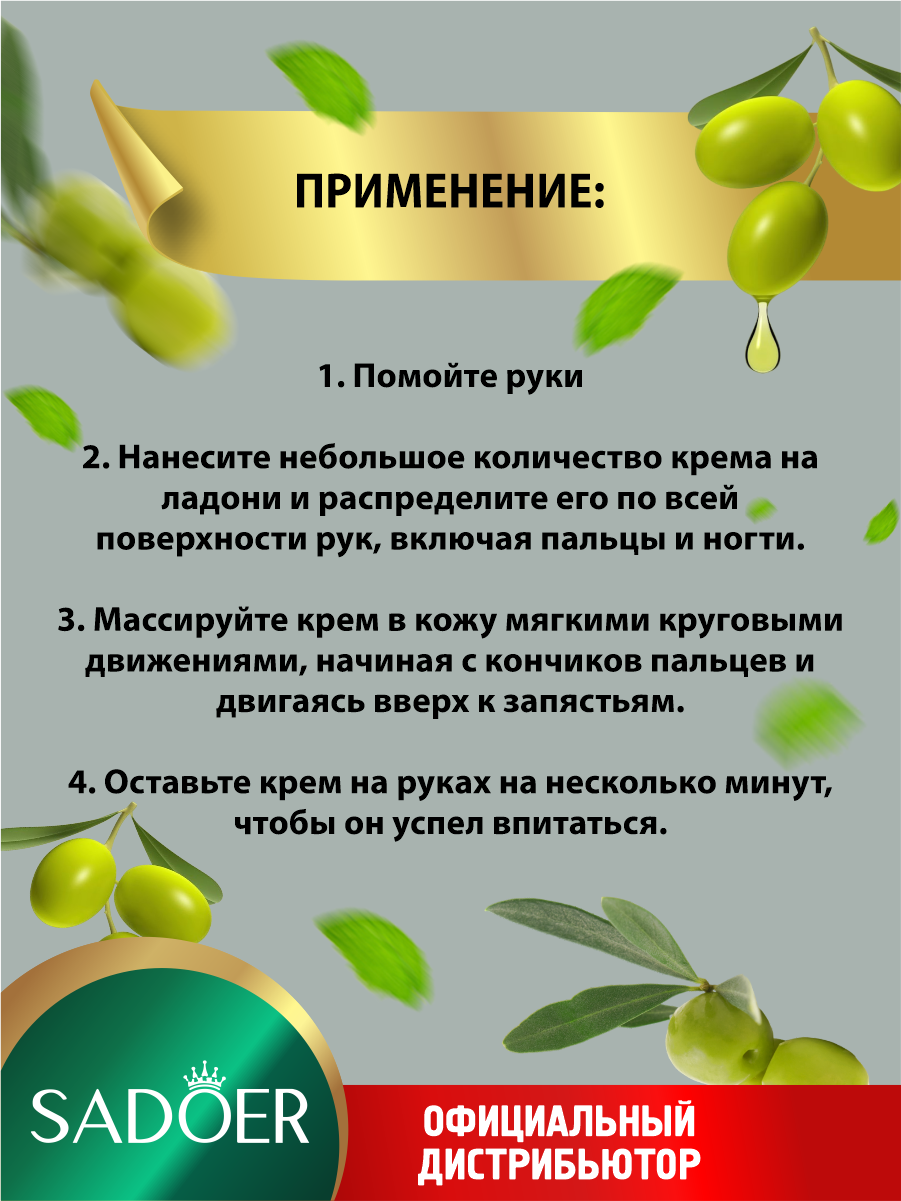 Антивозрастной увлажняющий крем для рук Sadoer с экстрактом оливы 30 гр.