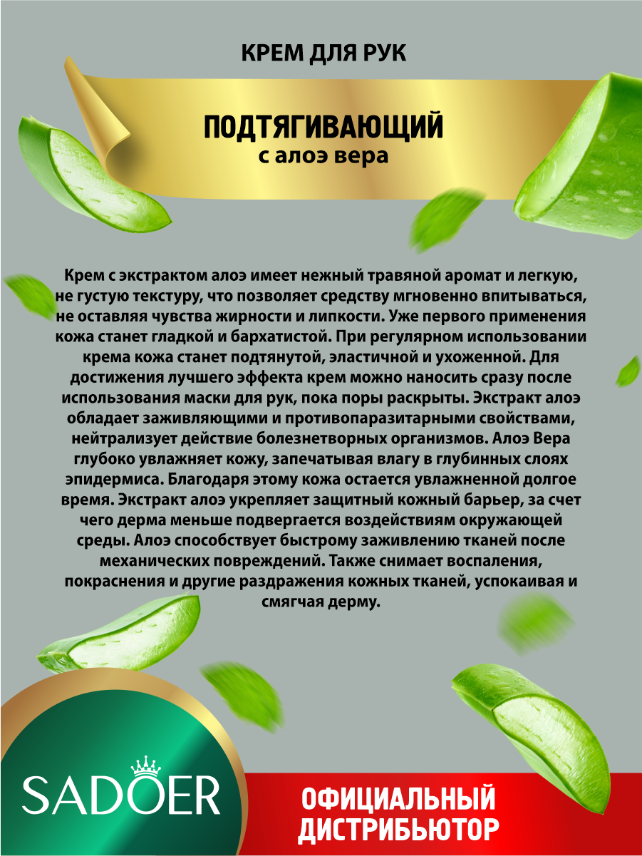 Подтягивающий крем для рук Sadoer с алоэ вера 30 гр.
