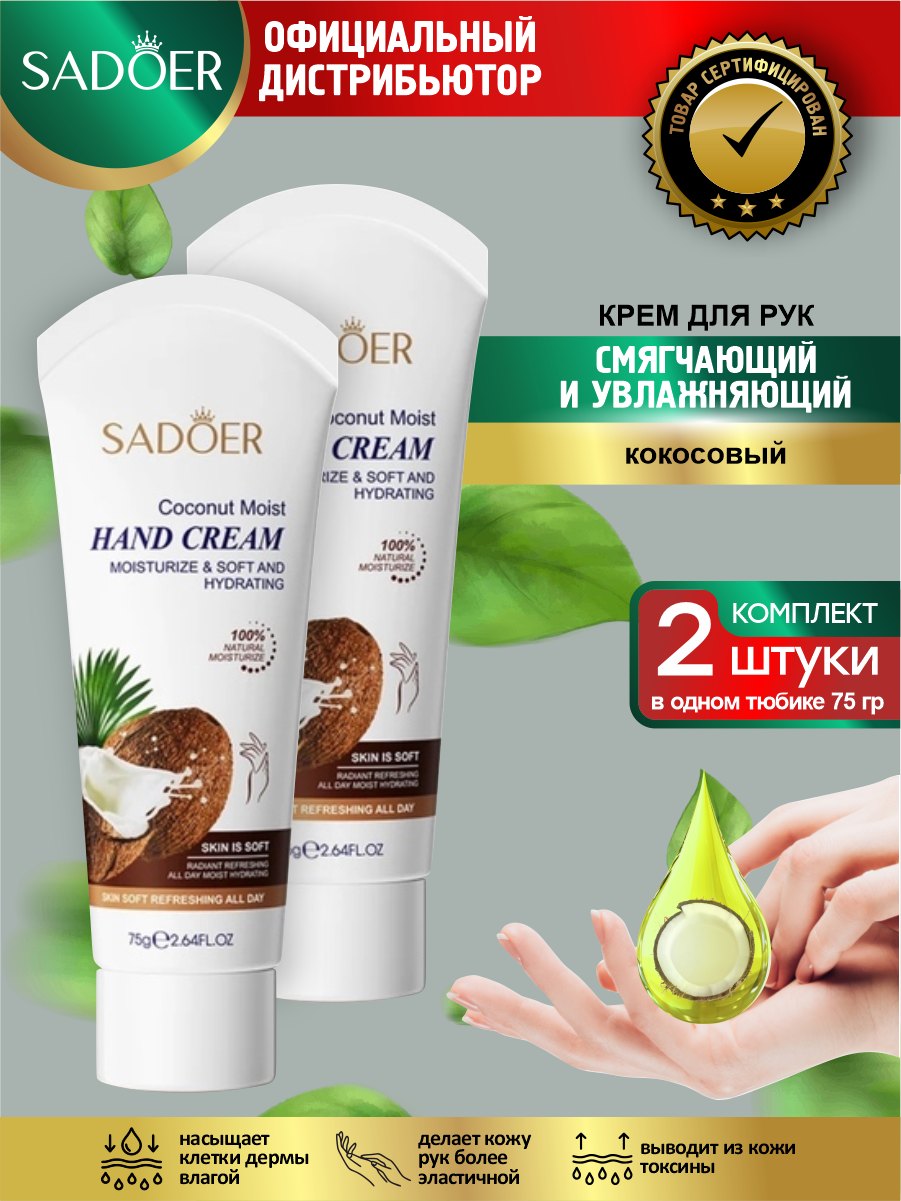 Купить Смягчающий и увлажняющий крем для рук Sadoer кокосовый 75 гр. х 2 шт.