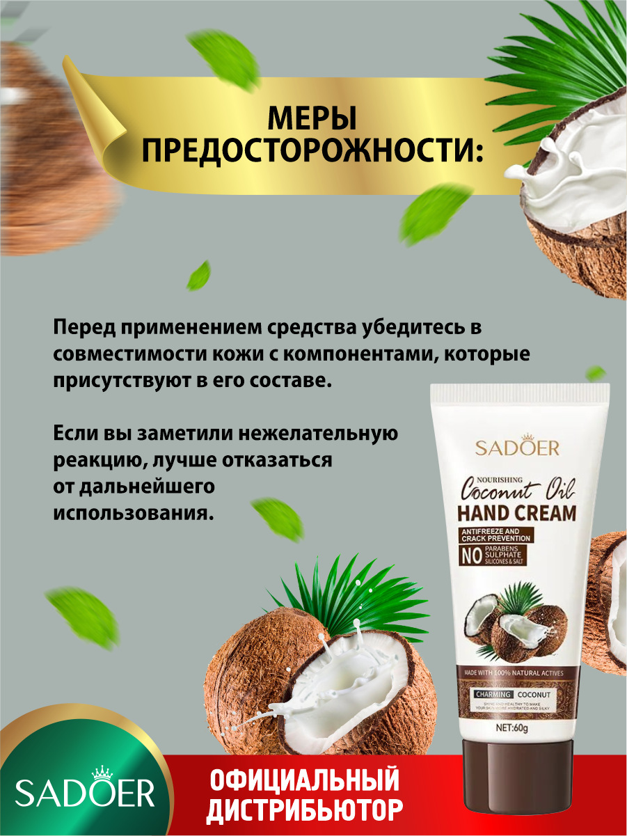 СохранитьКрем для рук против трещин Sadoer с кокосовым маслом 60 гр. х 3 шт. интересное: