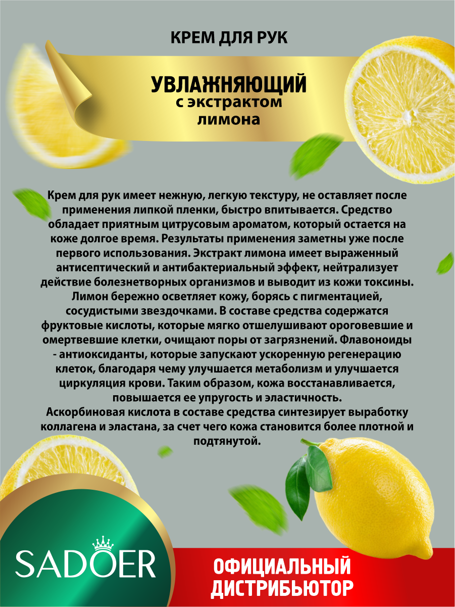 Увлажняющий крем для рук Sadoer с экстрактом лимона 30 гр.