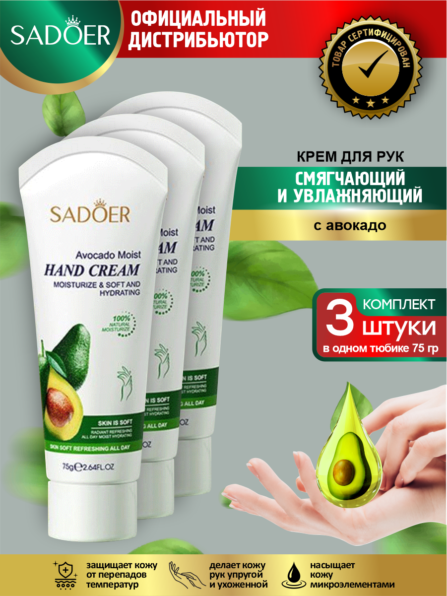 Купить Смягчающий и увлажняющий крем для рук Sadoer с авокадо 75 гр. х 3 шт.