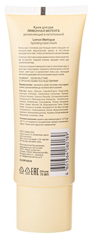 YUMMMY Крем для рук "лимонная меренга", 75 мл интересное: