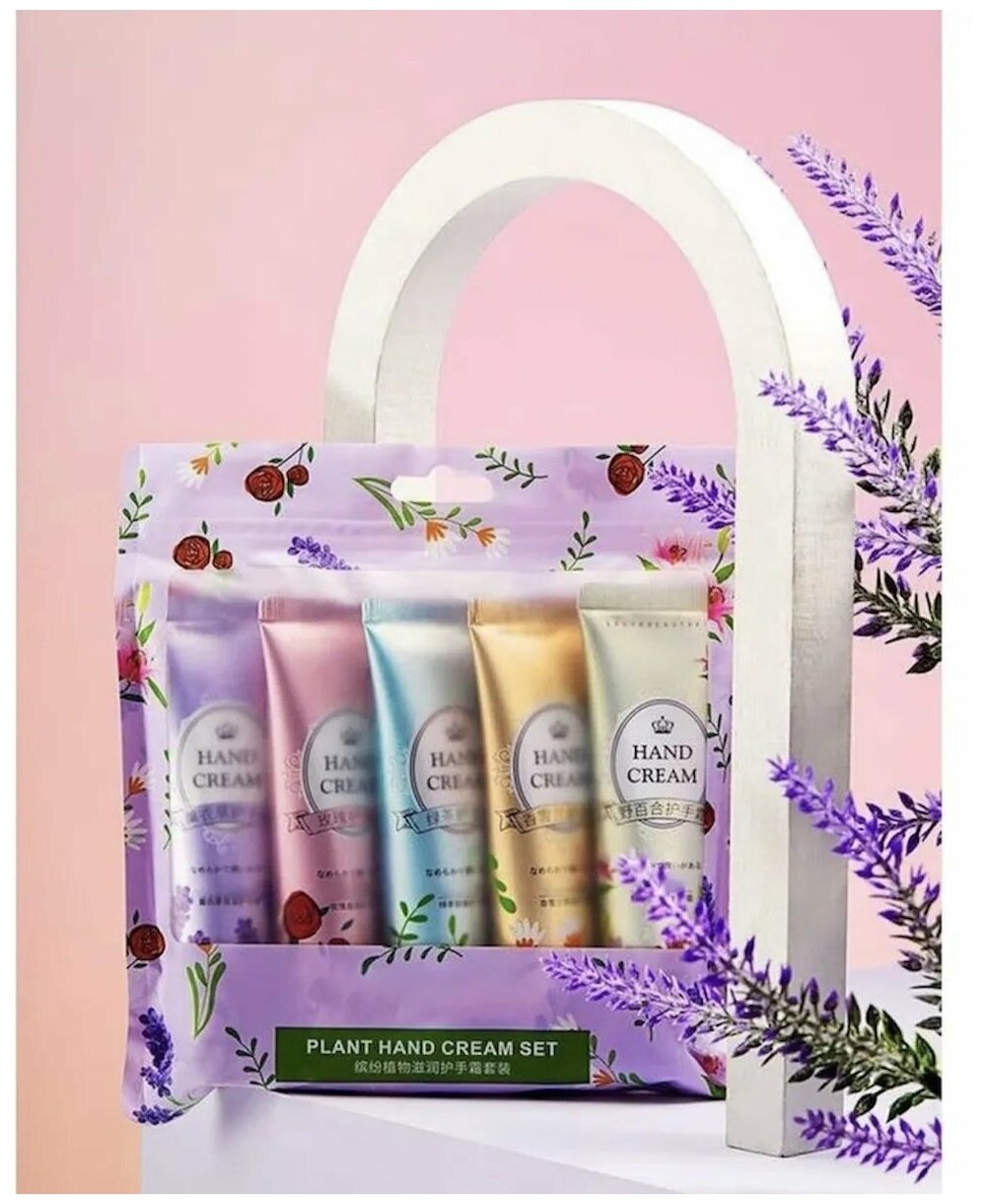 Увлажняющий крем для рук 5 штук по 30 мл / Питательный заживляющий восстанавливающий омолаживающий мини набор из 5 шт / Подарочные крема для очень сухой кожи / Маленький защитный зимний крем с экстрактом зеленого чая, лаванды, фрезии, дикой лилии, розы интересное: