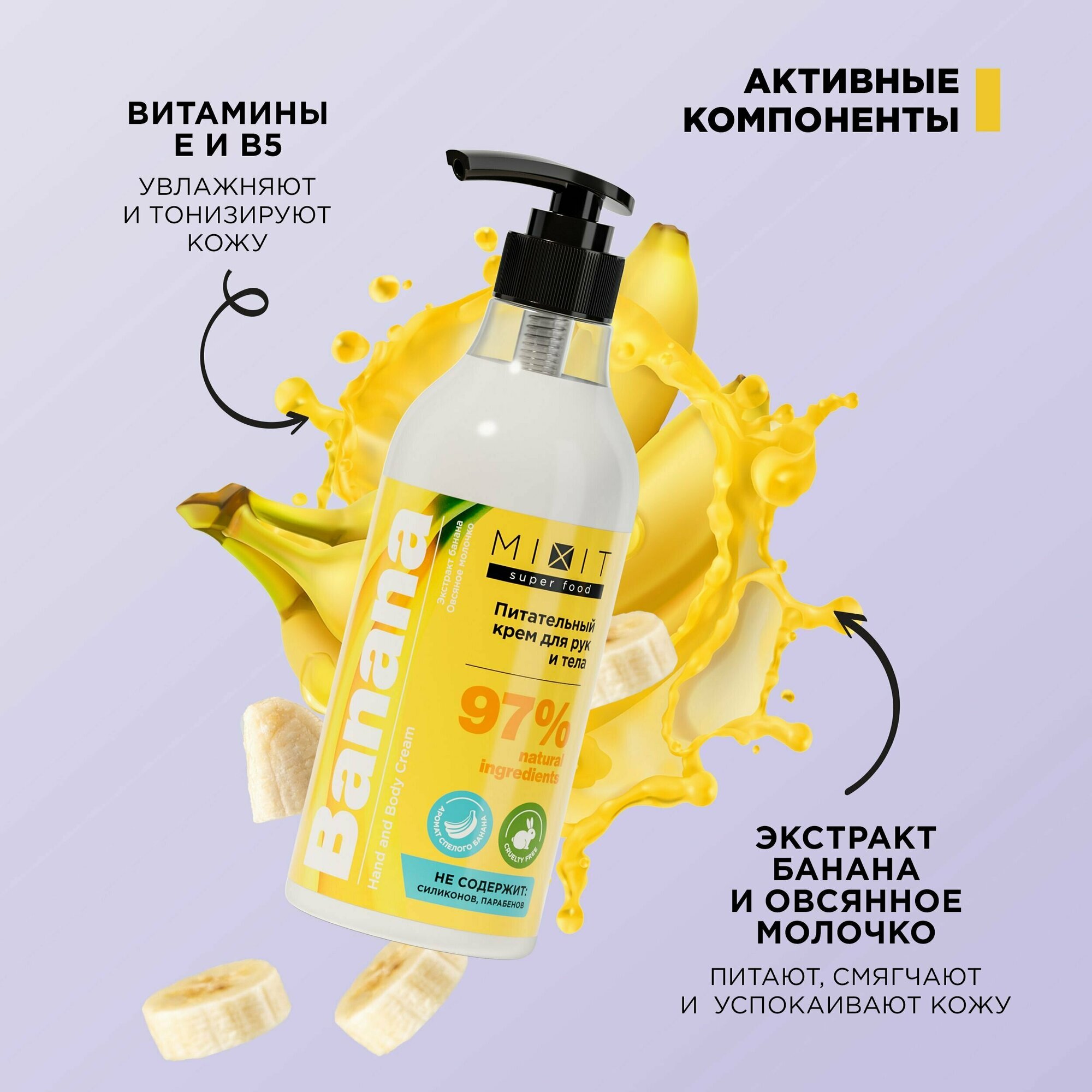 Купить MIXIT Питательный увлажняющий крем для рук и тела с пантенолом и витамином Е SUPER FOOD
