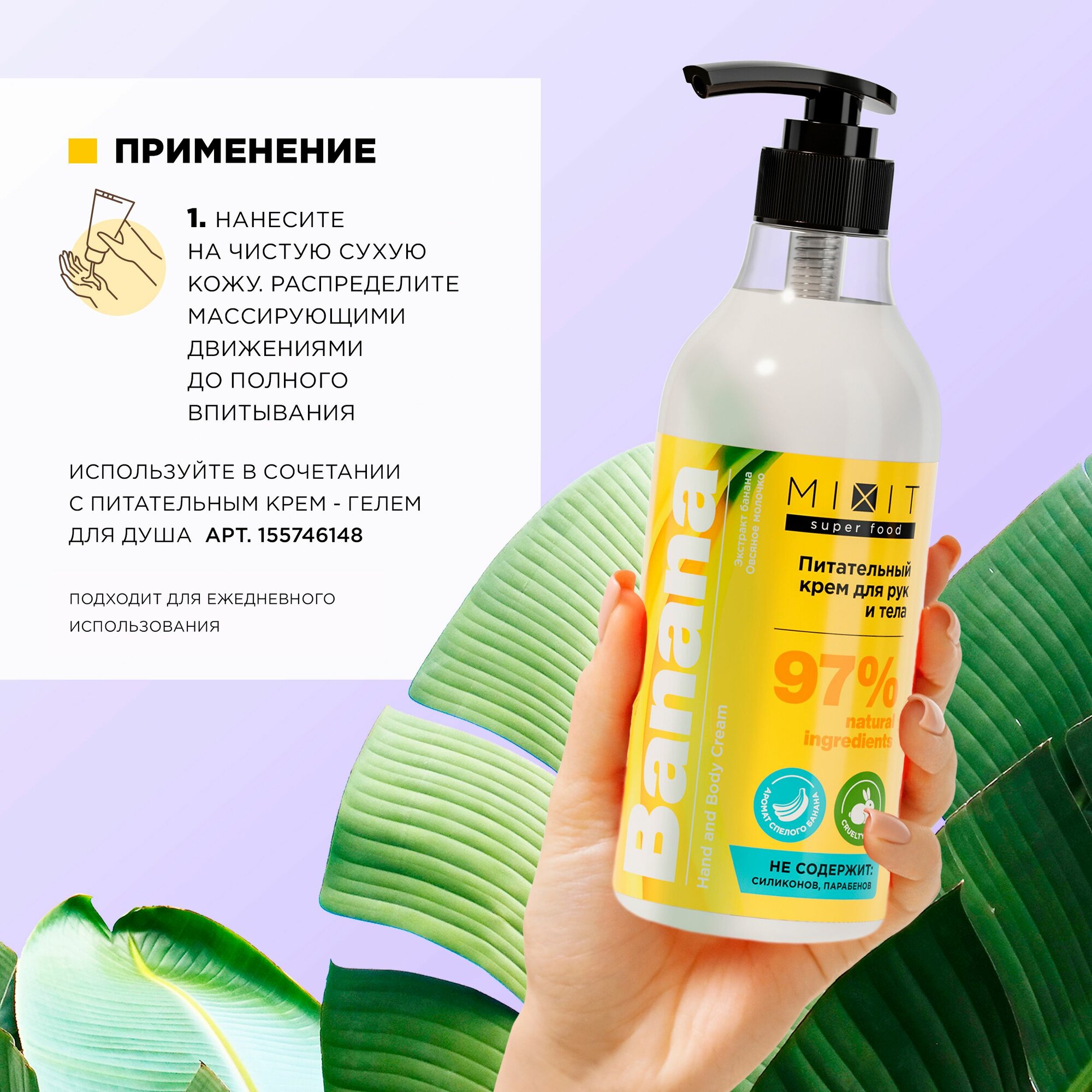 СохранитьMIXIT Питательный увлажняющий крем для рук и тела с пантенолом и витамином Е SUPER FOOD интересное: