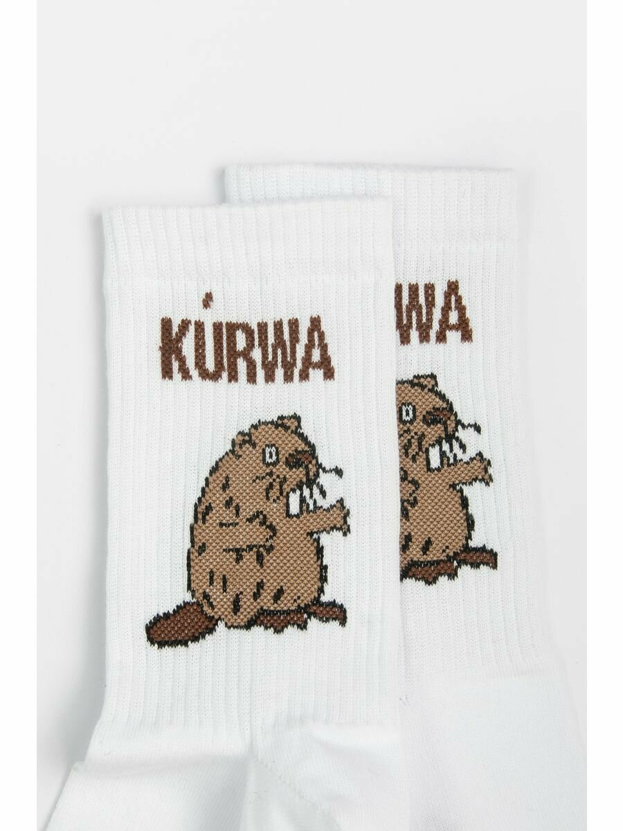 Носки SUPER SOCKS Курва Бобер, белый