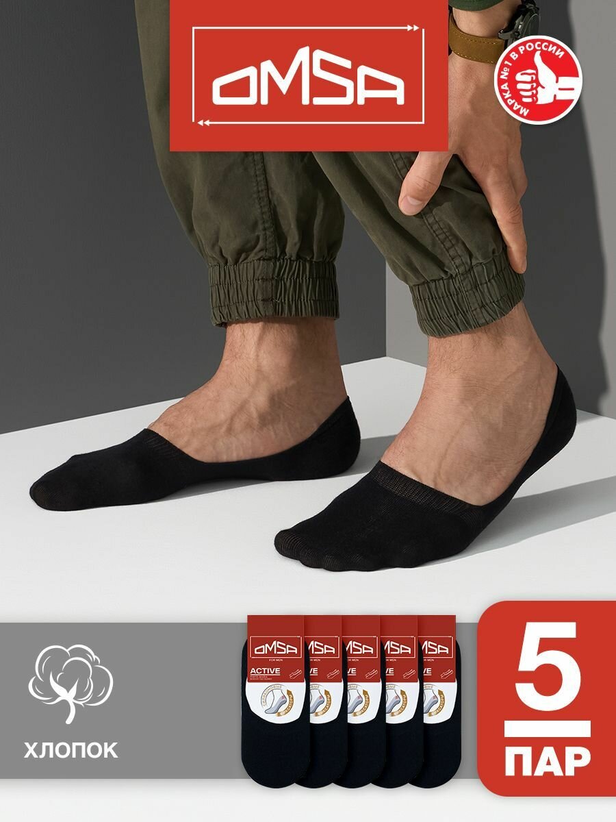 Носки мужские OMSA ACTIVE 101 хлопок (подследники) Nero 42-44. Комплект 5 шт